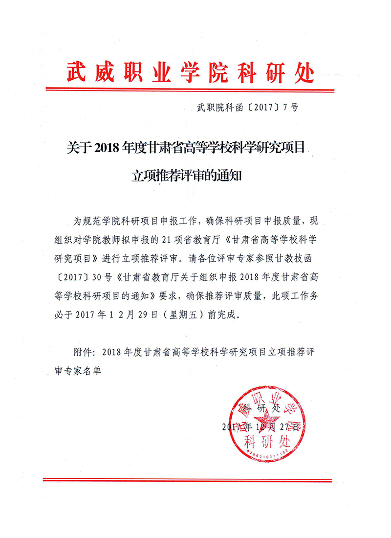 關(guān)于2018年度甘肅省高等學(xué)??茖W(xué)研究項(xiàng)目立項(xiàng)推薦評(píng)審的通知