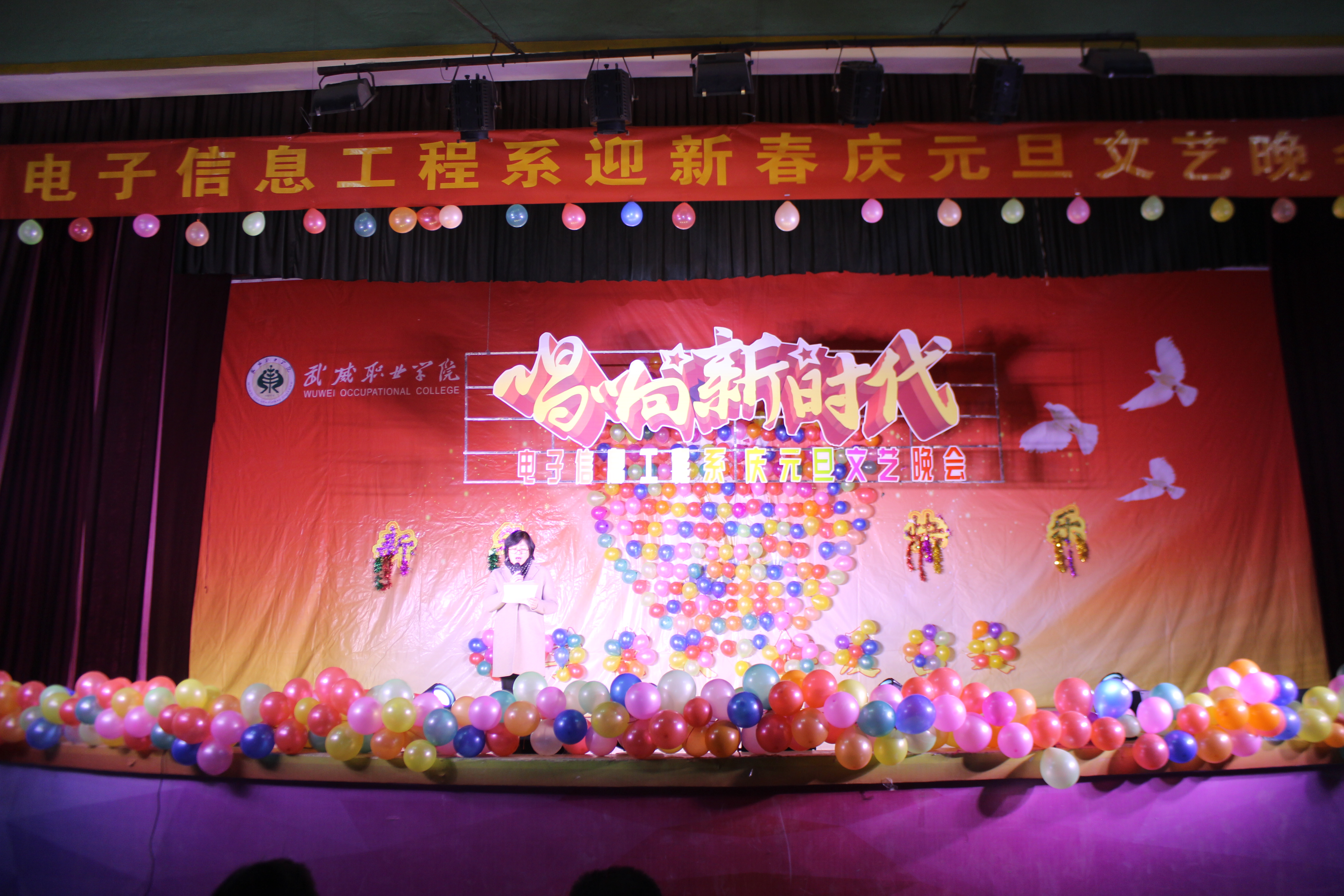 12月28日晚,電子信息工程系全體師生齊聚學(xué)院大禮堂,舉辦了以“唱響新時(shí)代”為主題的慶元旦文藝晚會(huì)。學(xué)院黨委委員、副院長王永緒作為特邀嘉賓觀看了演出。