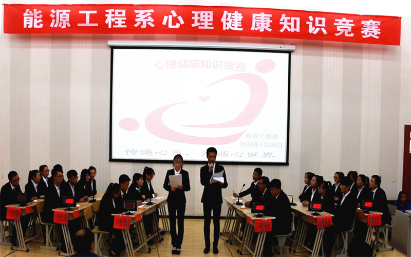 ? 為進(jìn)一步加強(qiáng)大學(xué)生心理健康知識的宣傳教育,全面提升大學(xué)生心理健康素質(zhì),積極倡導(dǎo)健康向上的生活理念,5月27日晚,能源工程系在正德廳隆重舉行心理健康知識競賽。全系師生參加了此次活動(dòng)。