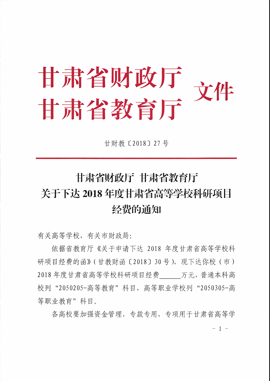 甘肅省財(cái)政廳 甘肅省教育廳關(guān)于下達(dá)2018年度甘肅省高等學(xué)校科研項(xiàng)目經(jīng)費(fèi)的通知.rar