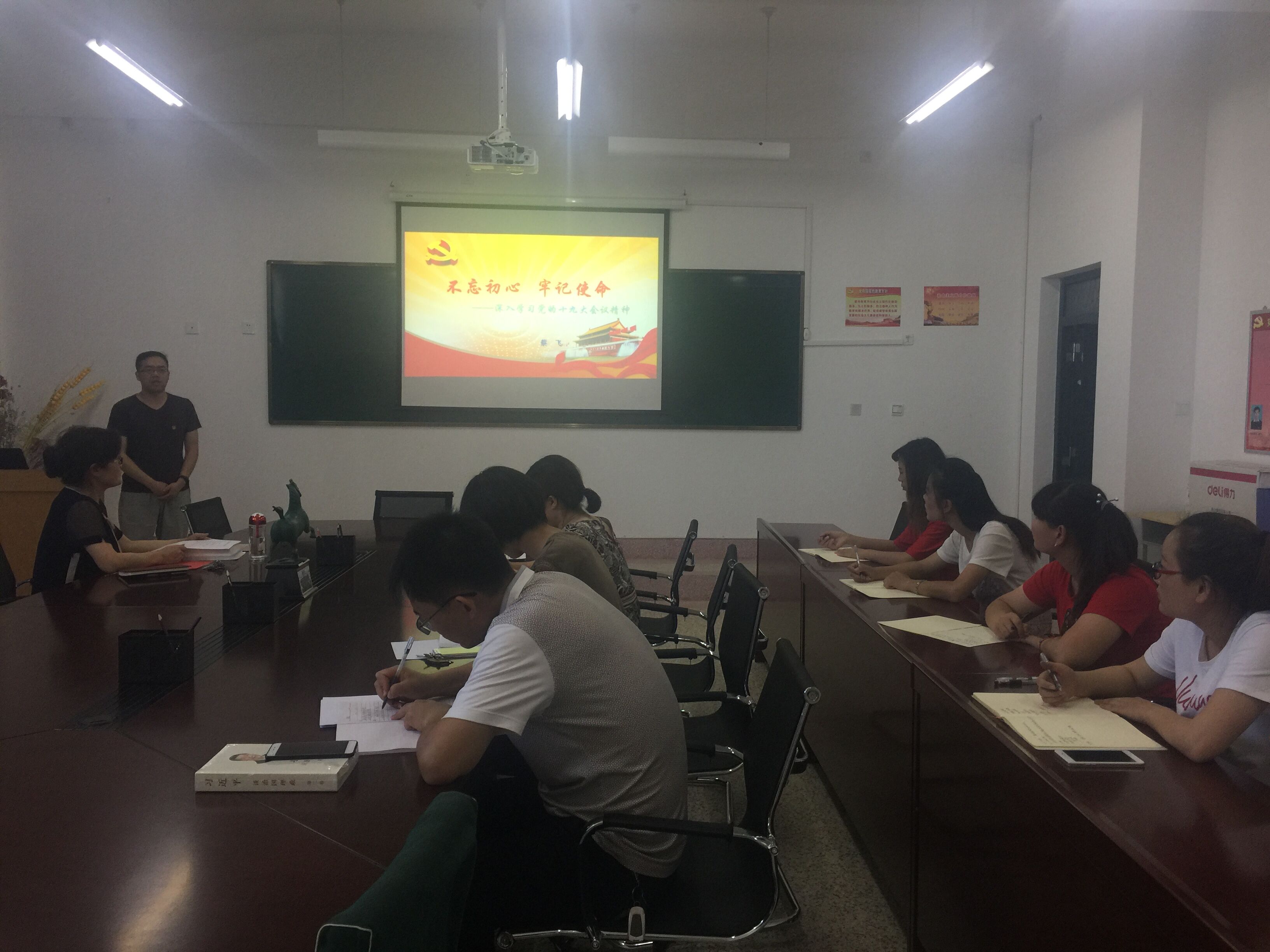 食品專業(yè)黨支部書記蔡飛同志講了題為 “不忘初心 牢記使命——深入學習黨的十九大會議精神”的黨課。他主要通過十九大會議的基本情況、重要意義和主題;十九大報告的主要內(nèi)容;十九大報告的重要論斷和亮點,帶領(lǐng)全系黨員再一次深入學習了十九大精神。