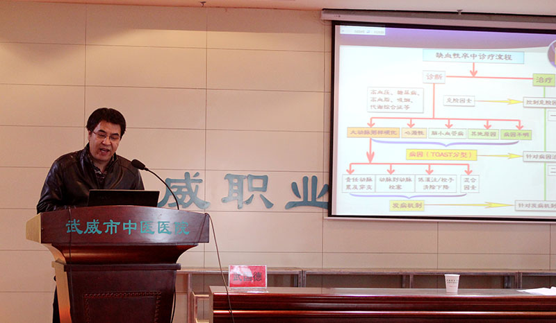 為提高醫(yī)務(wù)人員對(duì)于腦病(腦卒中)的診療和康復(fù)訓(xùn)練水平,推進(jìn)醫(yī)院腦卒中中心的籌備建設(shè),學(xué)院附屬醫(yī)院于11月11日上午,在內(nèi)科七樓會(huì)議室舉辦甘肅省中醫(yī)藥繼續(xù)醫(yī)學(xué)教育項(xiàng)目:腦病診療康復(fù)培訓(xùn)班。醫(yī)院副院長宗武山主持培訓(xùn)班開班儀式,副院長毛照海致辭歡迎蘭大二院2位神經(jīng)內(nèi)科專家講學(xué)指導(dǎo)工作。醫(yī)院各科室二百余名醫(yī)療骨干參加腦病診療康復(fù)培訓(xùn)班,聆聽學(xué)術(shù)報(bào)告。