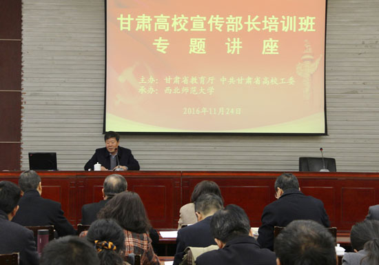 培訓(xùn)期間,甘肅省教育廳廳長(zhǎng)、黨組書(shū)記王嘉毅教授,甘肅省委網(wǎng)信辦主任梁和平,西北師范大學(xué)黨委書(shū)記陳克恭研究員,中共甘肅省委黨校李景銘教授、肖安鹿教授等分別為培訓(xùn)班學(xué)員作了系列專題講座。