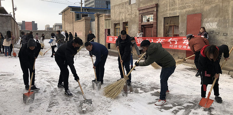 經(jīng)濟管理系黨總支開展“助力創(chuàng)城”清理街道積雪主題黨日活動