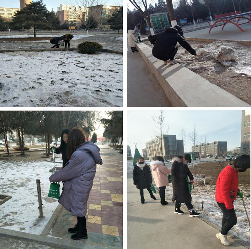 活動期間,由系輔導(dǎo)員齊斌文老師和班主任帶領(lǐng)同學(xué)們準(zhǔn)備好工具準(zhǔn)時(shí)在各區(qū)域集合,對校園內(nèi)煙頭、垃圾進(jìn)行撿拾,為全院師生營造了良好的學(xué)習(xí)氛圍。