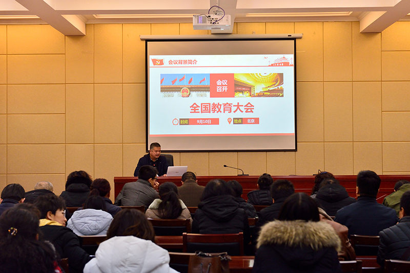 學(xué)工處處長王守云主講。他以“學(xué)為人師 行為世范 爭做‘四有’老師”為題學(xué)習(xí)了全國教育大會召開的背景、重大意義以及習(xí)近平總書記關(guān)于教育的重要論述。宣講會指出,全國教育大會是黨中央在中國特色社會主義進(jìn)入新時(shí)代、全面建成小康社會進(jìn)入決勝階段召開的一次劃時(shí)代、歷史性會議,時(shí)機(jī)好、規(guī)格高、影響大,在我國教育發(fā)展史上具有重要里程碑意義;習(xí)近平總書記深刻總結(jié)了黨的十八大以來我國教育事業(yè)發(fā)展取得的顯著成就,對當(dāng)前和今后一個(gè)時(shí)期教育工作作出重大部署,為加快推進(jìn)教育現(xiàn)代化、建設(shè)教育強(qiáng)國、辦好人民滿意的教育指明了前進(jìn)方向、提供了根本遵循。