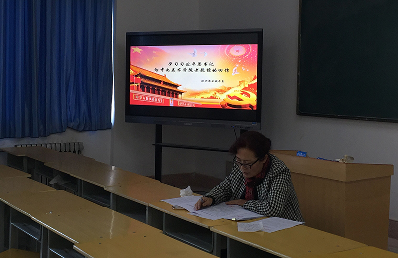 晏素珍要求,一要在全系迅速掀起學(xué)習(xí)習(xí)近平總書記給中央美術(shù)學(xué)院8位老教授回信精神的熱潮,把精神傳達(dá)到全體師生,并結(jié)合習(xí)總書記文藝工作座談會講話精神和全國文代會、作代會的講話精神,結(jié)合全國宣傳思想工作會議精神,結(jié)合本職工作,將回信精神落到實際。二要堅定文化自信,弘揚中華美育精神,把中華美育精神貫穿在教學(xué)創(chuàng)作、社會服務(wù)、貫穿到育人的全過程。三要在做好我系美育工作的同時,動員學(xué)校師生的力量,影響和輻射社會,讓美育發(fā)揮更大的作用。