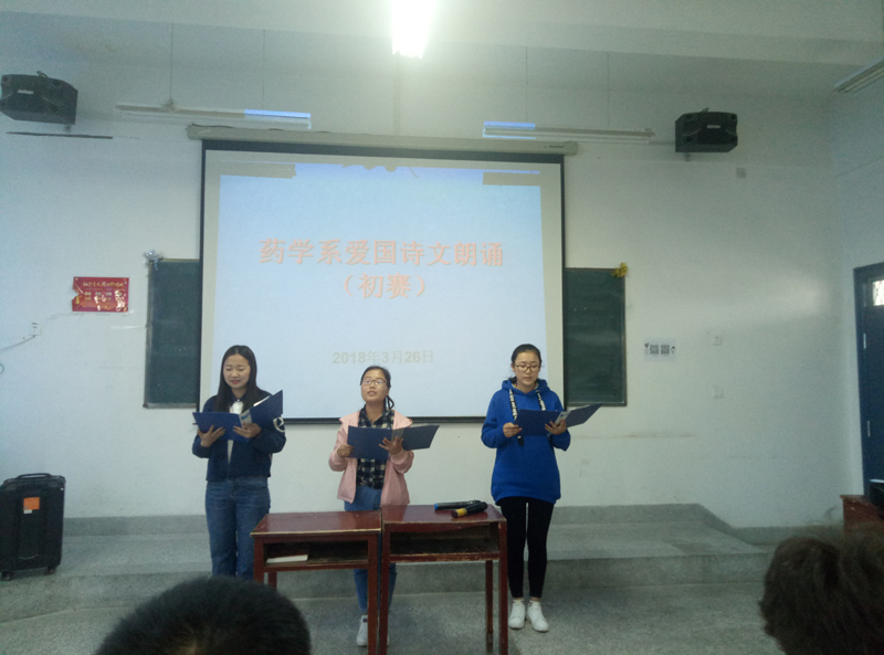 為深入學(xué)習(xí)貫徹習(xí)近平新時(shí)代中國特色社會(huì)主義思想和黨的十九大精神,鼓勵(lì)當(dāng)代大學(xué)生通過朗誦愛國詩文,感受中華經(jīng)典文化,塑造民族精神,展現(xiàn)新時(shí)期大學(xué)生精神風(fēng)貌,藥學(xué)系團(tuán)總支在系黨總支的安排和學(xué)院團(tuán)委的指導(dǎo)下,于3月26日在明遠(yuǎn)樓524教室舉辦了“我的中國夢(mèng)”經(jīng)典愛國詩文朗誦比賽。藥學(xué)系16級(jí)、17級(jí)各班學(xué)生代表參加了此次朗誦比賽。
