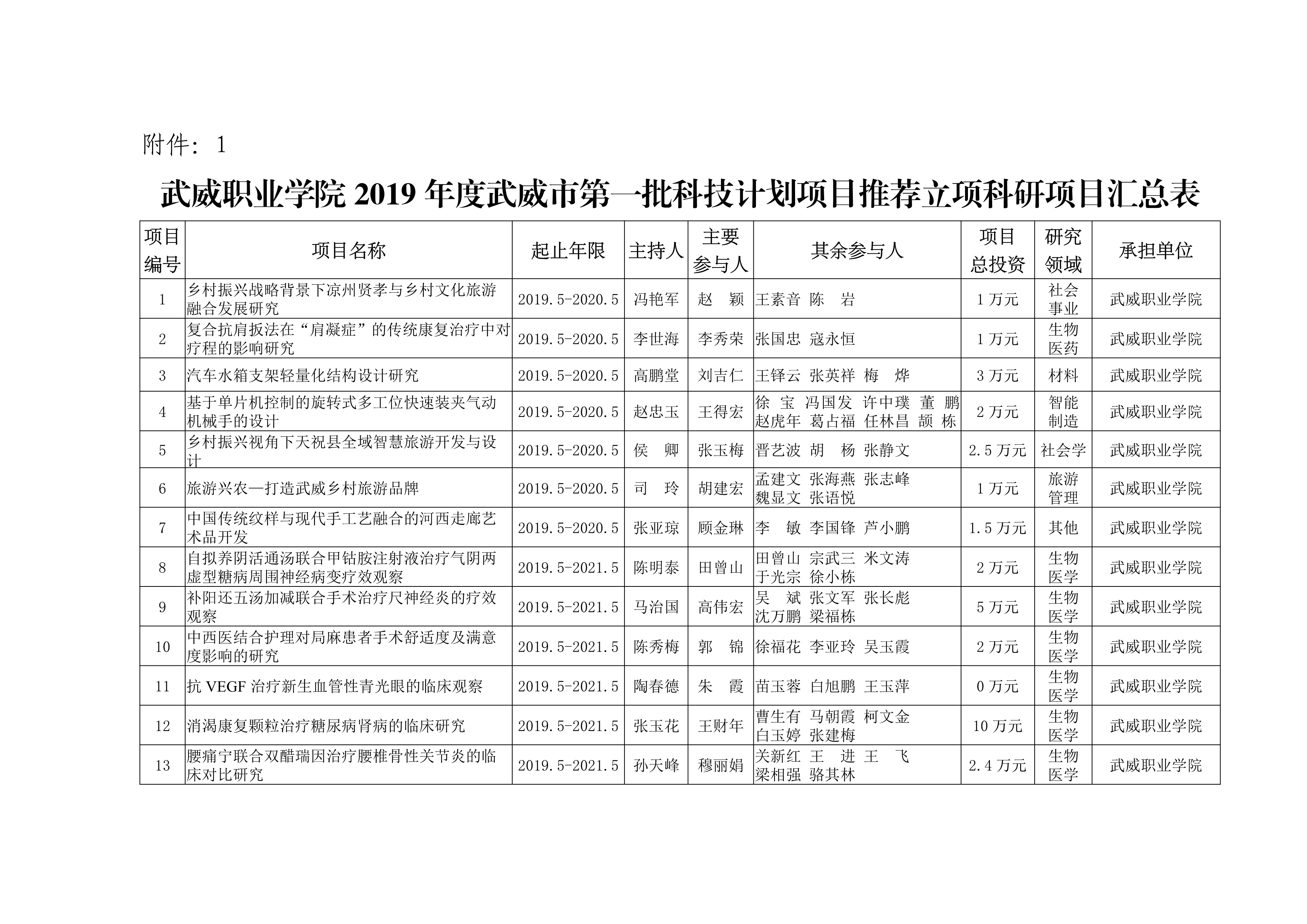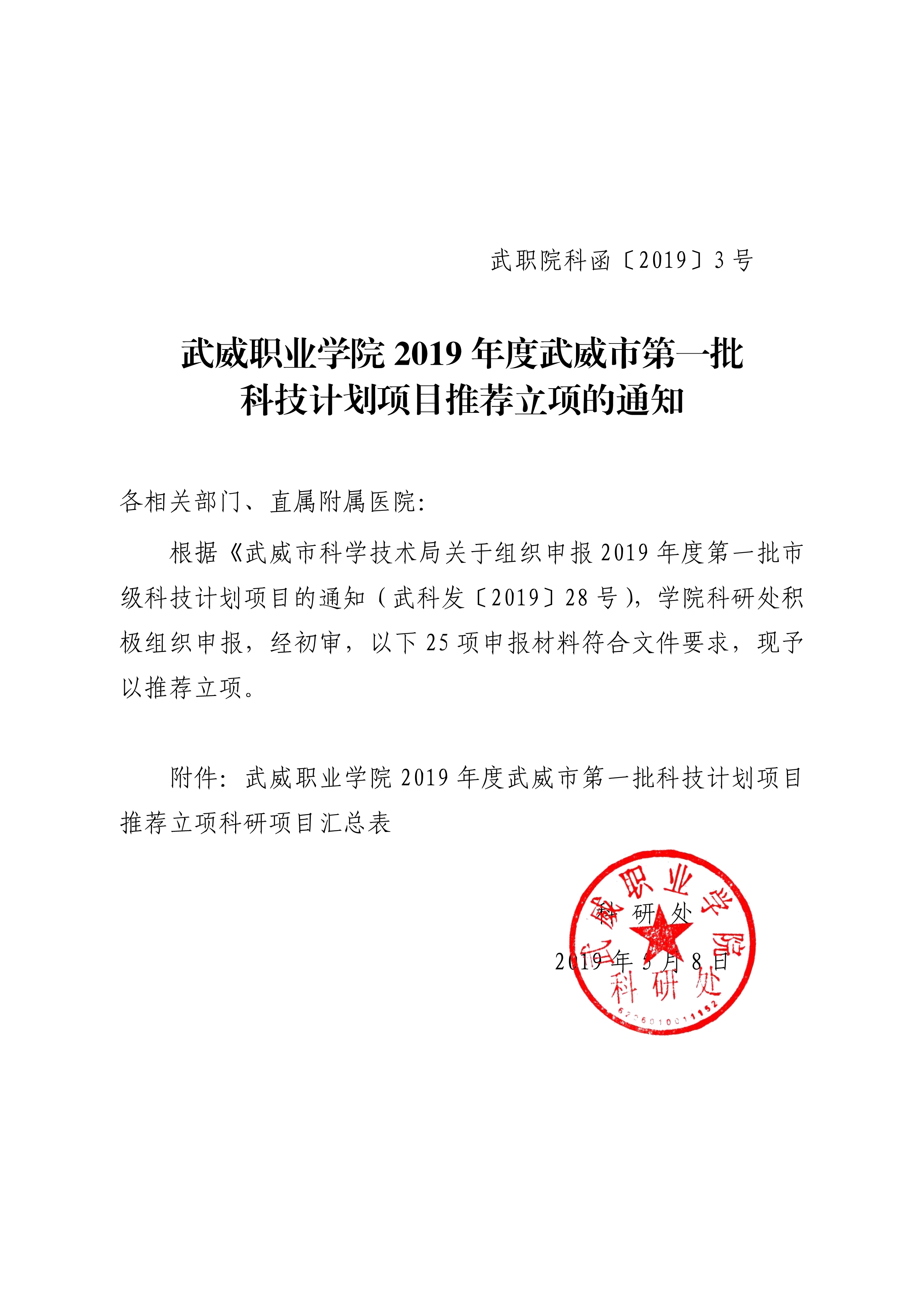 武威職業(yè)學(xué)院2019年度武威市第一批科技計(jì)劃項(xiàng)目推薦立項(xiàng)的通知