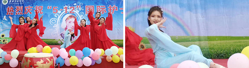 為展示技能大賽獲獎選手風采,參加2019年甘肅省護理技能大賽的獲獎學生代表進行了“心肺復(fù)蘇技術(shù)”表演,學院第六屆護理技能大賽獲獎選手代表進行了“右踝關(guān)節(jié)扭傷包扎技術(shù)”表演。之后,進行的文藝演出,為“5.12”慶祝護士節(jié)畫上了圓滿的句號。