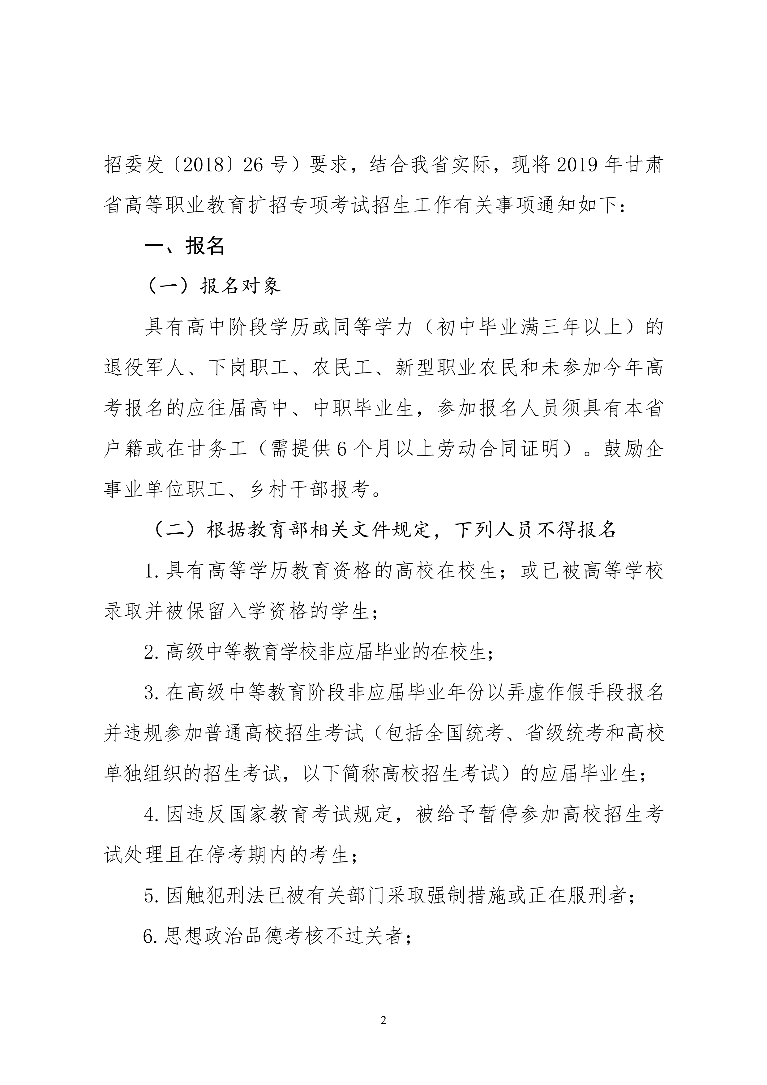 19年關(guān)于做好2019年甘肅省高等職業(yè)教育擴(kuò)招專項(xiàng)考試招生工作的通知
