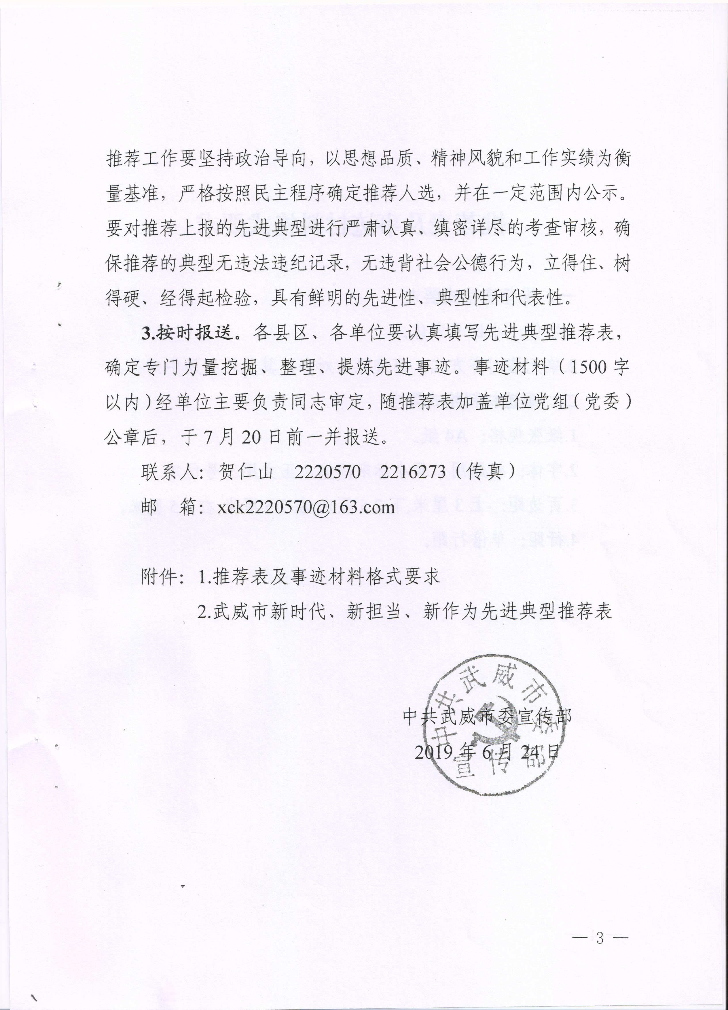 附件:《中共武威市委宣傳部關(guān)于推薦新時(shí)代、新?lián)?dāng)、新作為先進(jìn)典型的通知》