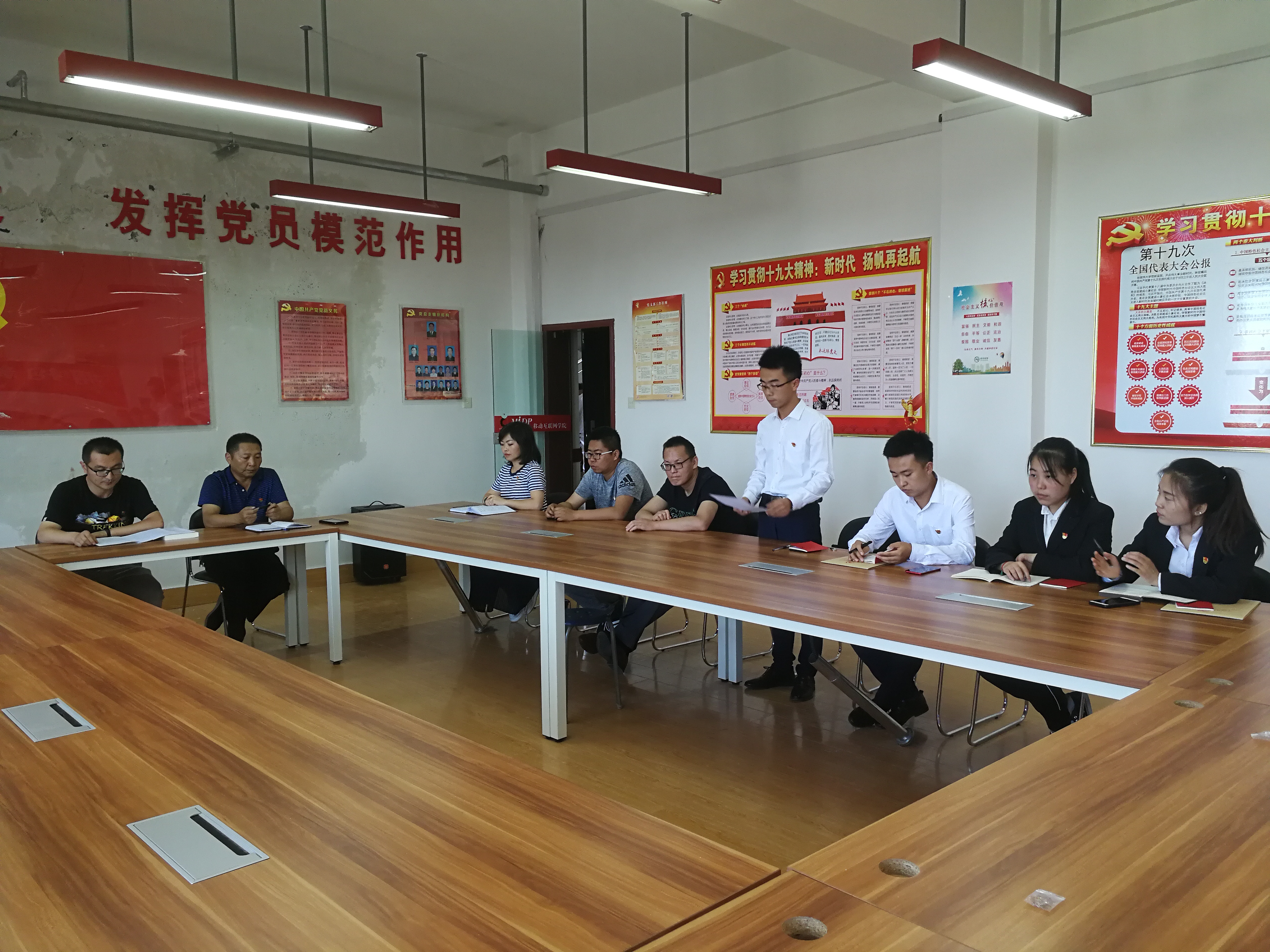 會議開始,電子及網(wǎng)絡(luò)黨支部書記唐宗舜宣讀了預(yù)備黨員名單并介紹了預(yù)備黨員基本情況。宣誓儀式在莊嚴(yán)雄渾的《國際歌》旋律中開始,唐宗舜同志代表電子信息工程系黨總支全體黨員向新加入黨員隊伍的4名新黨員表示衷心的祝賀和熱烈的歡迎。