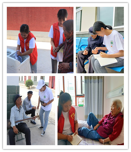 本次活動圍繞養(yǎng)老主題分別調研了城郊鄉(xiāng)鎮(zhèn)懷安鎮(zhèn)、經濟條件較好的武南鎮(zhèn)、地理位置偏遠并且是深度貧困的張義鎮(zhèn)、少數(shù)民族鄉(xiāng)鎮(zhèn)抓喜秀龍鄉(xiāng)、移民搬遷點西靖鎮(zhèn)以及武威目前規(guī)模最大的社會化養(yǎng)老中心幸業(yè)養(yǎng)老中心。實踐團以“開展座談——入戶宣傳調查——親情陪伴——整理分析養(yǎng)老數(shù)據”開展了實踐活動。
