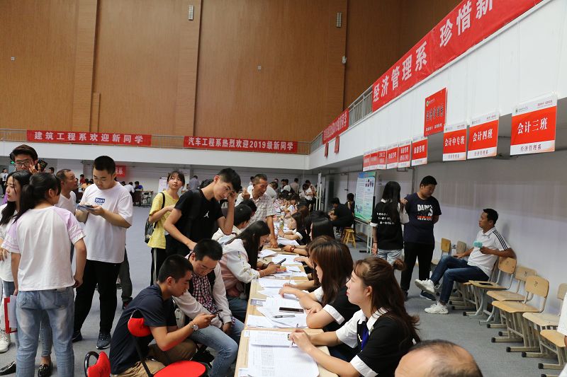學院安排專車前往武威火車站、汽車站,為新生及家長提供全天候接站服務,并為送行家長專設了休息區(qū)。安保人員指揮車輛有序停放,保障安全有序的校園環(huán)境。工作人員引導新生辦理入校手續(xù),報到、繳費、入班、物品發(fā)放等各個環(huán)節(jié)有條不紊、高效暢通。體育館的電子屏上不斷播放學院宣傳片、大型公益短片,增強了新生及家長對學院的了解、認可和熱愛。為幫助家庭經(jīng)濟困難學生順利入學,學院還設立了“綠色通道”服務點,為家庭經(jīng)濟困難學生辦理緩交(減免)學費和生源地信用助學貸款登記手續(xù)。