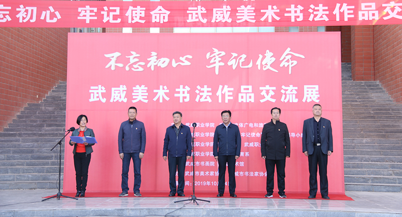 為深入開展“不忘初心牢記使命”主題教育,10月14日下午,武威職業(yè)學(xué)院、武威市文體廣電和旅游局舉辦的“不忘初心、牢記使命”武威美術(shù)書法作品交流展在學(xué)院大學(xué)生活動(dòng)中心前廣場(chǎng)隆重開幕。