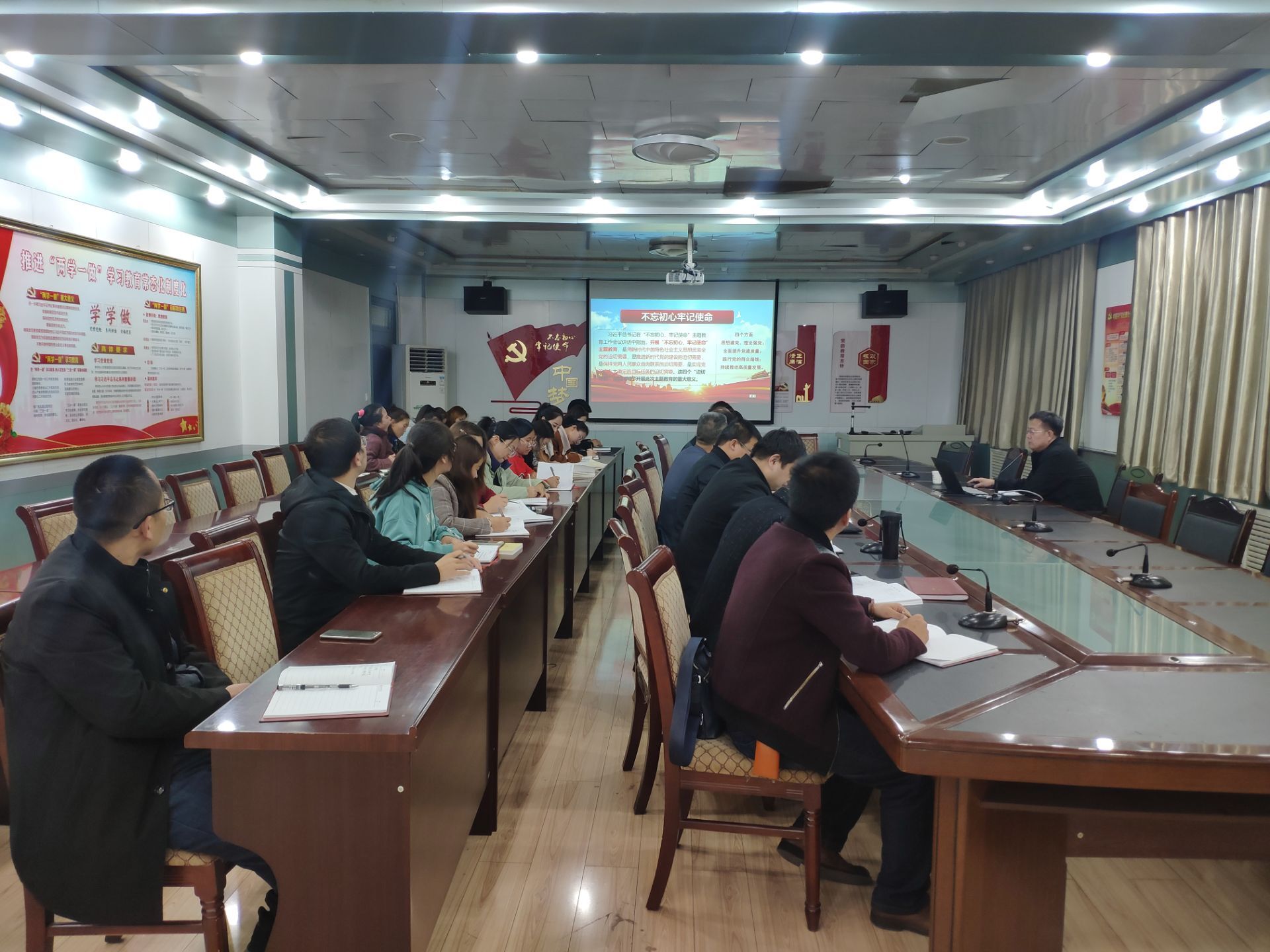 張開禮通過分析“不忘初心、牢記使命”主題教育的重大意義,指出“初心“、”使命”的豐富內(nèi)涵,身為中國(guó)共產(chǎn)黨員要堅(jiān)守馬克思主義信仰、堅(jiān)持黨領(lǐng)導(dǎo)一切工作、堅(jiān)持全心全意為人民服務(wù)。張開禮指出,全體黨員要堅(jiān)持讀原著、學(xué)原文、悟原理,在學(xué)深悟透習(xí)近平新時(shí)代中國(guó)特色社會(huì)主義思想上下功夫;以 “三會(huì)一課”、主題黨日等為重點(diǎn),全面加強(qiáng)理論學(xué)習(xí),結(jié)合主題教育重點(diǎn)解決好理想信念、責(zé)任擔(dān)當(dāng)和執(zhí)行落實(shí)等問題上踐行初心和使命。