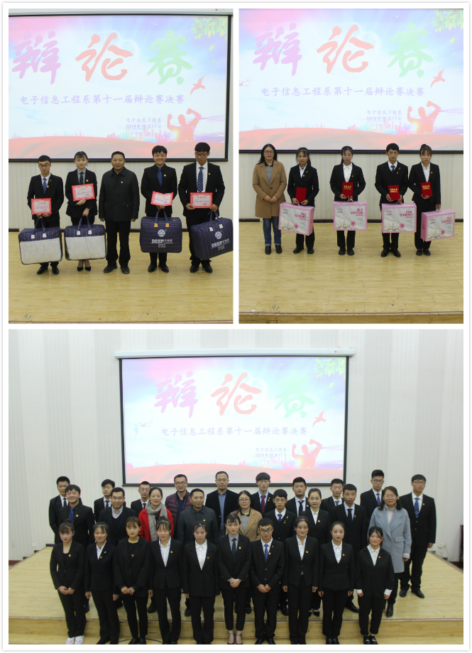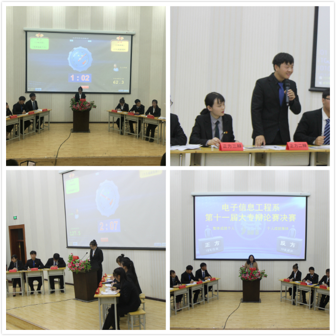 2019年11月11日進(jìn)行了“集體成就個(gè)人”和“個(gè)人成就集體”為主題的辯論賽決賽。本次辯論賽共分為開篇立論、攻辯、攻辯小結(jié)、自由辯論、總結(jié)陳詞五個(gè)環(huán)節(jié)。在整個(gè)比賽中,雙方辯手爭鋒相對(duì),步步緊逼,在最精彩的自由辯論環(huán)節(jié),選手你來我往,旁征博引,臺(tái)下掌聲不斷。經(jīng)過緊張而又激烈的角逐, 18電子信息工程技術(shù)大專班以精彩的表現(xiàn)獲得了辯論賽的冠軍。