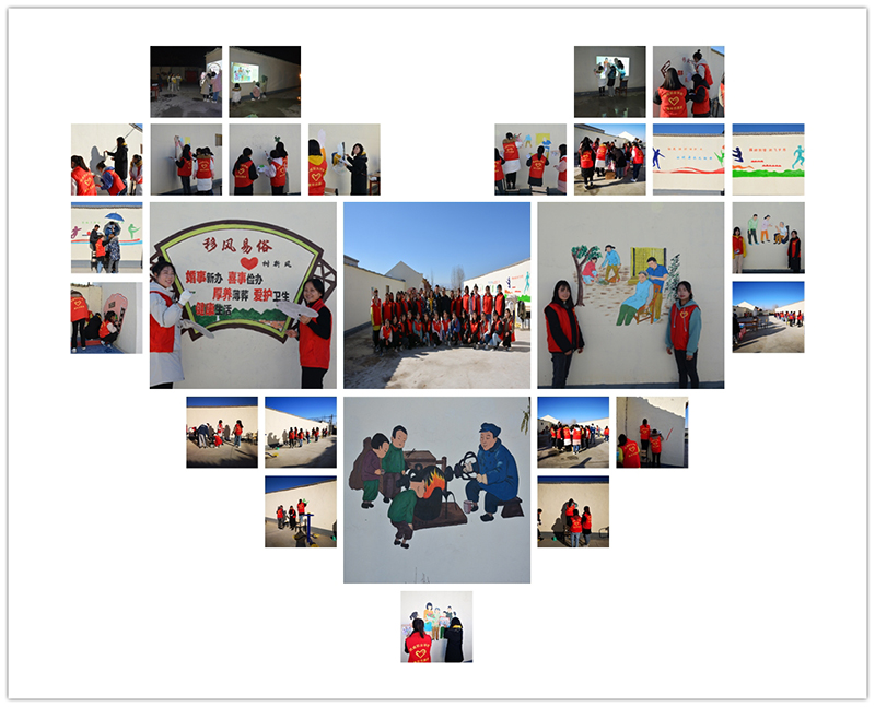 本次團(tuán)隊(duì)命名為“紅色筑夢(mèng)墻繪小分隊(duì)”,由人文藝術(shù)教育系美術(shù)功底較為扎實(shí)的學(xué)生組成,圍繞新時(shí)代中國(guó)特色社會(huì)主義、社會(huì)主義核心價(jià)值觀、鄉(xiāng)村振興以及鄉(xiāng)村文化建設(shè)等方面的宣傳內(nèi)容,對(duì)朱莊村村委會(huì)廣場(chǎng)墻及房前屋后的墻面等處進(jìn)行了主題創(chuàng)作和墻繪制作?;顒?dòng)一期共完成墻繪作品10幅,二期待完成16副。生動(dòng)形象的文化墻,有機(jī)滲入優(yōu)秀傳統(tǒng)文化知識(shí)元素,易看易學(xué)易懂, 讓鄉(xiāng)村面貌煥然一新的同時(shí),也使一面面墻壁變成美觀又會(huì)“說(shuō)話(huà)”的正能量傳播者, 漸漸成為了村民身邊離不開(kāi)的“輔導(dǎo)員”,潛移默化的“宣講團(tuán)”,提升村民的道德素養(yǎng),傳遞向上、向善的正能量,弘揚(yáng)文明新風(fēng)尚,營(yíng)造良好的社會(huì)風(fēng)氣和干事創(chuàng)業(yè)氛圍,建設(shè)文明鄉(xiāng)風(fēng),助推鄉(xiāng)村振興。