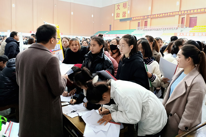 此次招聘會,有118家企業(yè)到場參會,參加招聘的企業(yè)涵蓋教育培訓(xùn)、機械機電、能源化工、藝術(shù)設(shè)計、建筑房地產(chǎn)、商品貿(mào)易、金融證券、信息技術(shù)、文化服務(wù)等類別,共計提供崗位2100多個。招聘會秩序井然、人頭攢動。畢業(yè)生們手持簡歷和就業(yè)三方協(xié)議穿梭于各招聘展位與招聘單位交流,招聘單位不遺余力向畢業(yè)生們積極推介。招聘會結(jié)束后,招聘單位在各系進行了深入宣講和面試。學(xué)院2020屆畢業(yè)生共有3329名,除了醫(yī)藥衛(wèi)生類畢業(yè)生尚在實習(xí)環(huán)節(jié)外,其余學(xué)生均參加了招聘“雙選”。經(jīng)初步統(tǒng)計,此次招聘會達成了就業(yè)意向1200多名,有623人在招聘會現(xiàn)場簽訂了就業(yè)三方協(xié)議。