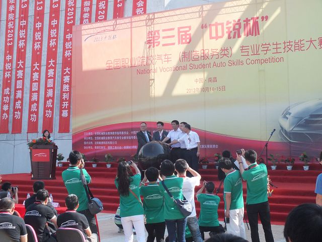 2013年10月14—15日,第三屆“中銳杯”全國職業(yè)院校汽車(制造服務(wù)類)專業(yè)學(xué)生技能大賽”總決賽在江西南昌舉行。全國近百所院校三百多名學(xué)生參加了此次大賽。本次大賽由全國機(jī)械職業(yè)教育教學(xué)指導(dǎo)委員會、中國汽車流通協(xié)會、機(jī)械工業(yè)教育發(fā)展中心共同主辦,全國機(jī)械職業(yè)教育汽車類專業(yè)教學(xué)指導(dǎo)委員會、江西現(xiàn)代職業(yè)技術(shù)學(xué)院承辦。本次大賽裁判和評委均由汽車行業(yè)的各大代表以及資深企業(yè)營銷專家擔(dān)任,因此評選也將更加注重實(shí)踐性和專業(yè)性。