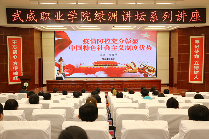 6月9日,武威職業(yè)學(xué)院“綠洲講壇”第33期在學(xué)院菁英廳舉行,學(xué)院黨委副書(shū)記翟存祥教授作了題為《疫情防控充分彰顯中國(guó)特色社會(huì)主義制度優(yōu)勢(shì)》的講座。中科低碳新能源技術(shù)學(xué)院師生代表共150余人參加了報(bào)告會(huì)。