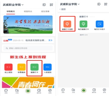 新生使用“智慧校園”賬號,登錄釘釘平臺,進(jìn)入“武威職業(yè)學(xué)院”組織架構(gòu),點擊武職門戶進(jìn)入新生線上報到流程。