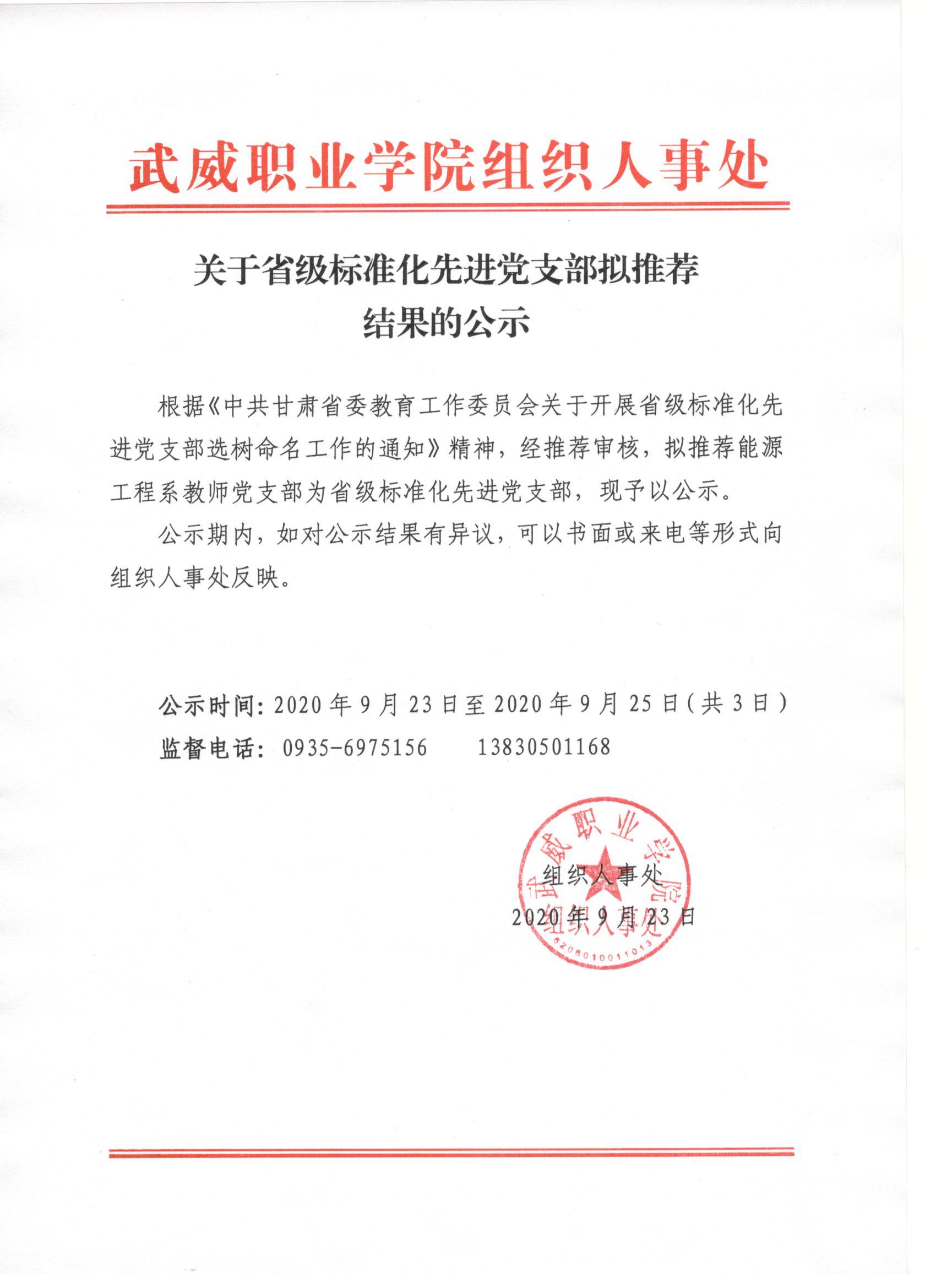 關(guān)于省級標(biāo)準(zhǔn)化先進黨支部擬推薦結(jié)果的公示