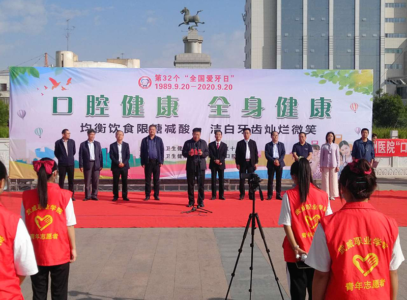 2020年9月20日是第32個(gè)“全國愛牙日”,為進(jìn)一步普及口腔健康知識,結(jié)合今年全國愛牙日“口腔健康,全身健康”的主題,9月20日上午,由武威市衛(wèi)生健康委員會、武威市紅十字協(xié)會牽頭在文化廣場組織開展了“9.20全國愛牙日”主題宣傳活動(dòng)。學(xué)院黨委委員、副院長王守云、醫(yī)學(xué)技術(shù)學(xué)院黨總支書記黃文源及醫(yī)學(xué)技術(shù)學(xué)院100多名口腔醫(yī)學(xué)技術(shù)專業(yè)學(xué)生參加了志愿服務(wù)活動(dòng)。