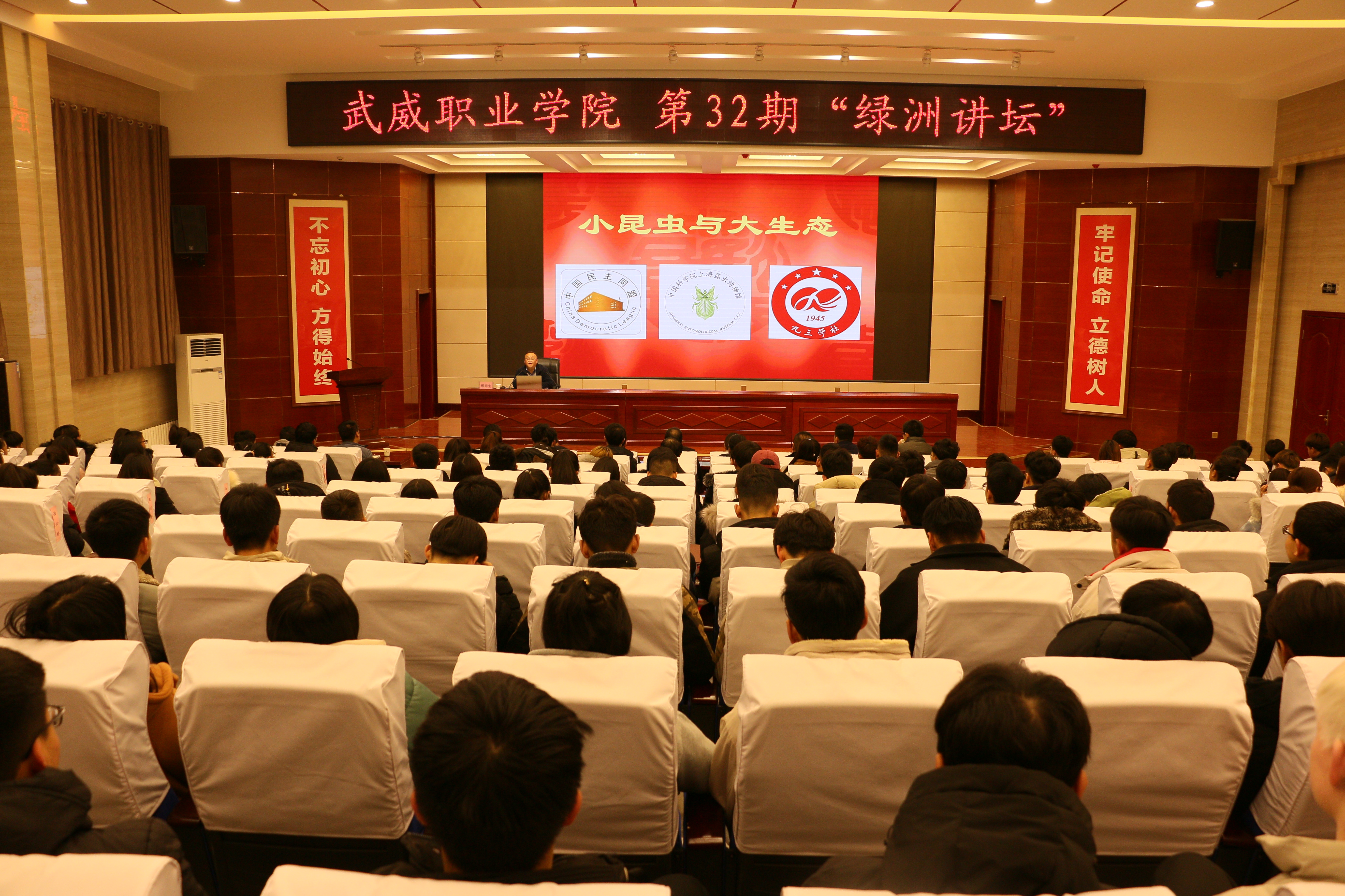 12月18日,武威職業(yè)學(xué)院“綠洲講壇”第32期在學(xué)院菁英廳舉行,本期活動(dòng)邀請(qǐng)到中國(guó)科學(xué)院上海昆蟲博物館館長(zhǎng)殷海生教授作主題為“小昆蟲與大生態(tài)”的報(bào)告。學(xué)院現(xiàn)代農(nóng)業(yè)技術(shù)系相關(guān)專業(yè)學(xué)生、中科低碳新能源技術(shù)學(xué)院師生代表共220人聆聽了報(bào)告。本期講壇由能源工程系黨總支書記胡建宏主持。