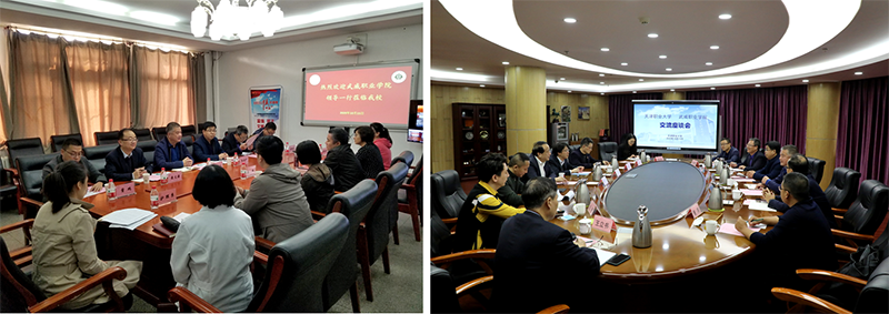 考察組一行分別與天津醫(yī)學高等??茖W校、天津職業(yè)大學進行了深入交流座談。天津醫(yī)高專是國家雙高校中唯一一所衛(wèi)生類學校,在座談會上,醫(yī)高專為學院醫(yī)藥衛(wèi)生類專業(yè)群建設提出了指導意見,介紹了醫(yī)高?!?.5+1.5”學制安排促就業(yè)、教學系黨委行政雙組長抓就業(yè)、就業(yè)工作經(jīng)費動態(tài)調整引領就業(yè)的工作機制,并就下一步共同培養(yǎng)師資、互派青年骨干教師交流學習達成共識。天津職業(yè)大學是《天津—甘肅職業(yè)教育協(xié)作實施方案》合作院校,在天津職大座談會上,兩校圍繞專業(yè)群組群、產(chǎn)業(yè)學院組建模式、教學模式、探索產(chǎn)業(yè)學院建設、混合所有制二級學院建設、就業(yè)工作“一對一”模式、學生管理經(jīng)驗和成果進行了分享與交流。劉斌校長出席并主持會議,對學院的雙高建設給予了特別關心與指導。他希望,雙方作為兄弟院校,要進一步加強交流合作,努力為推動東西協(xié)作和武威職業(yè)教育高質量發(fā)展做出新的更大的貢獻。