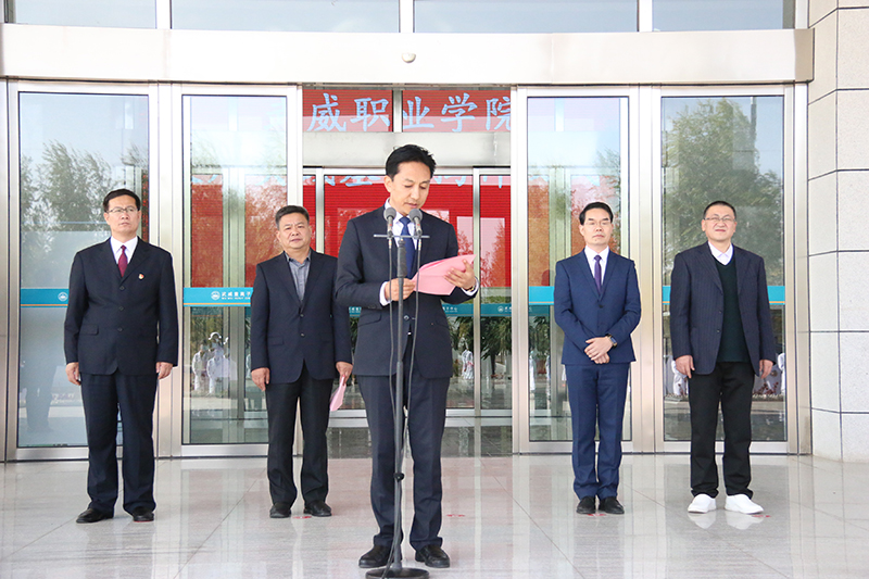 揭牌儀式上,趙明介紹學(xué)院教育教學(xué)改革發(fā)展所取得的成效,強(qiáng)調(diào)職業(yè)教育和普通教育是兩種不同的教育類型,具有同等重要地位,全面落實(shí)《國家職業(yè)教育改革實(shí)施方案》和“技能甘肅”部署要求,推動(dòng)學(xué)院“雙高”建設(shè),爭創(chuàng)高職應(yīng)用型本科院校,離不開高水平的合作醫(yī)院,離不開高水平的師資隊(duì)伍。教師實(shí)踐基地的揭牌成立,將會(huì)進(jìn)一步加強(qiáng)雙方的合作交流,實(shí)現(xiàn)資源共享、優(yōu)勢互補(bǔ)、共同發(fā)展,我們要積極探索和創(chuàng)新基地育人方式,使之成為“雙師型”教師培養(yǎng)的搖籃。