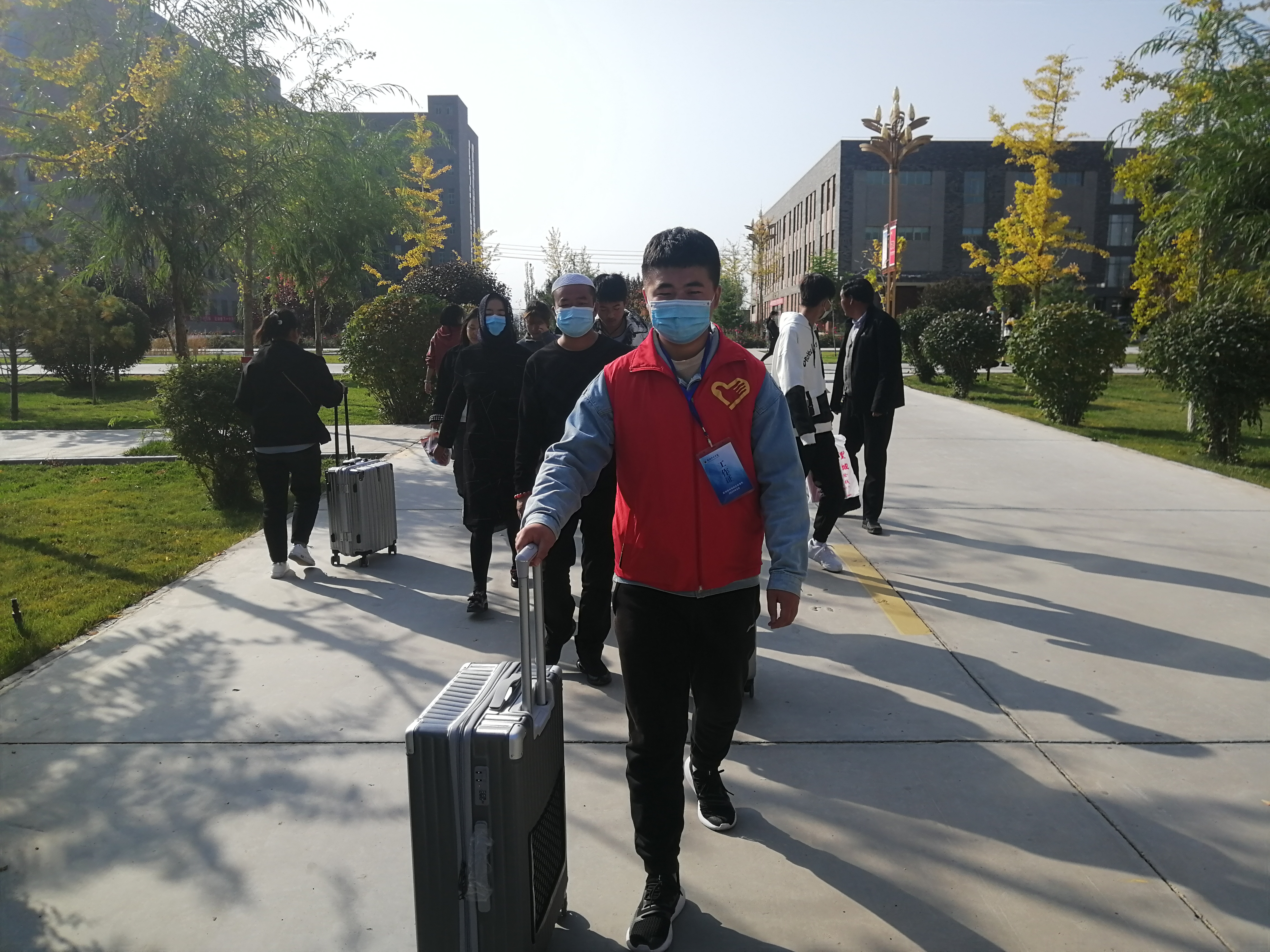 此次迎新活動(dòng)由我系黨委書記黃文源老師和團(tuán)委書記石瑞山老師親自指導(dǎo),學(xué)生會(huì)成員與分團(tuán)委成員的配合,我系于2020年10月9日至11日展開(kāi)了迎接新生活動(dòng),提著行李,推著箱子,那一張張青春的面容,充滿了對(duì)大學(xué)的好奇和向往。寢室樓里來(lái)回穿梭的身影是早在樓下等待幫新生搬動(dòng)行李的志愿者,揮灑的汗水在幫助新生的喜悅下顯得無(wú)比閃耀。