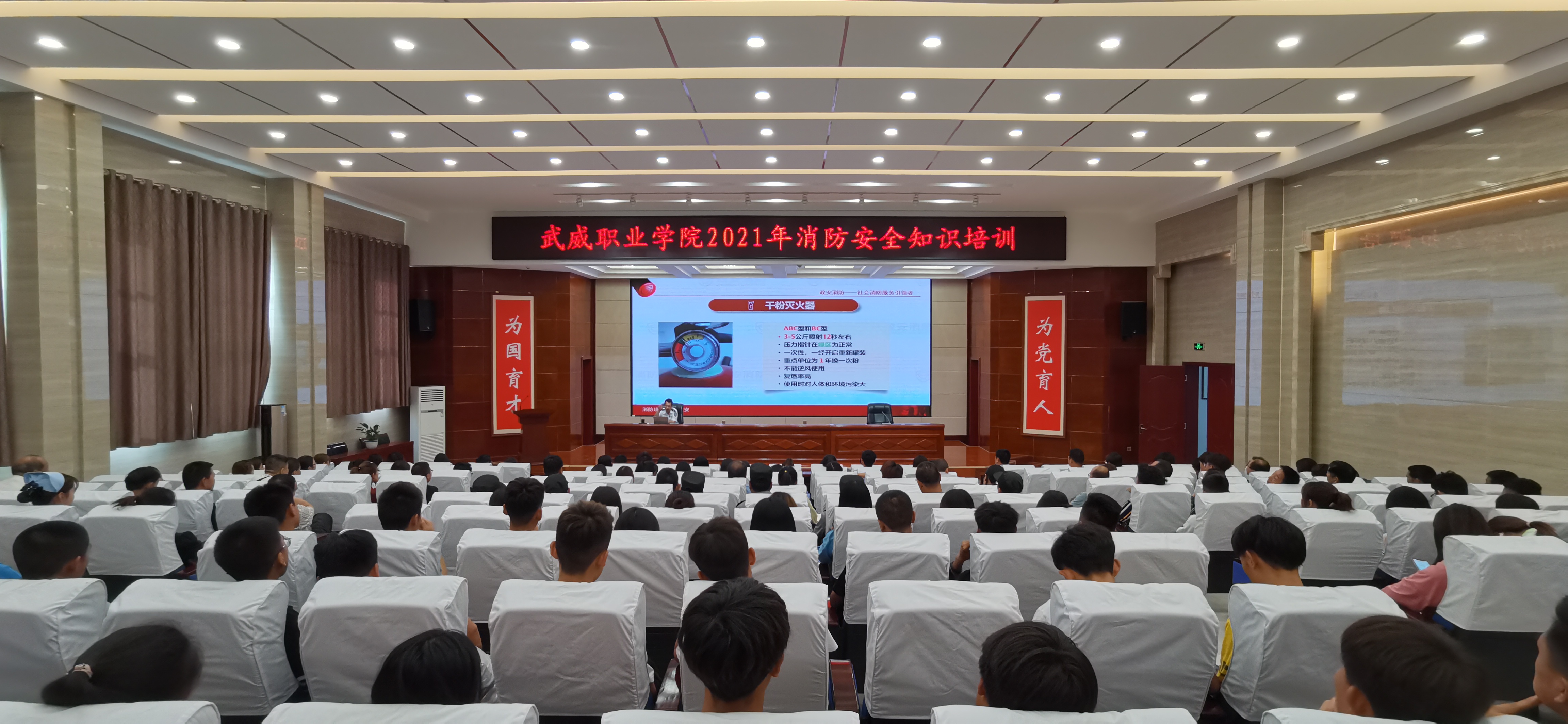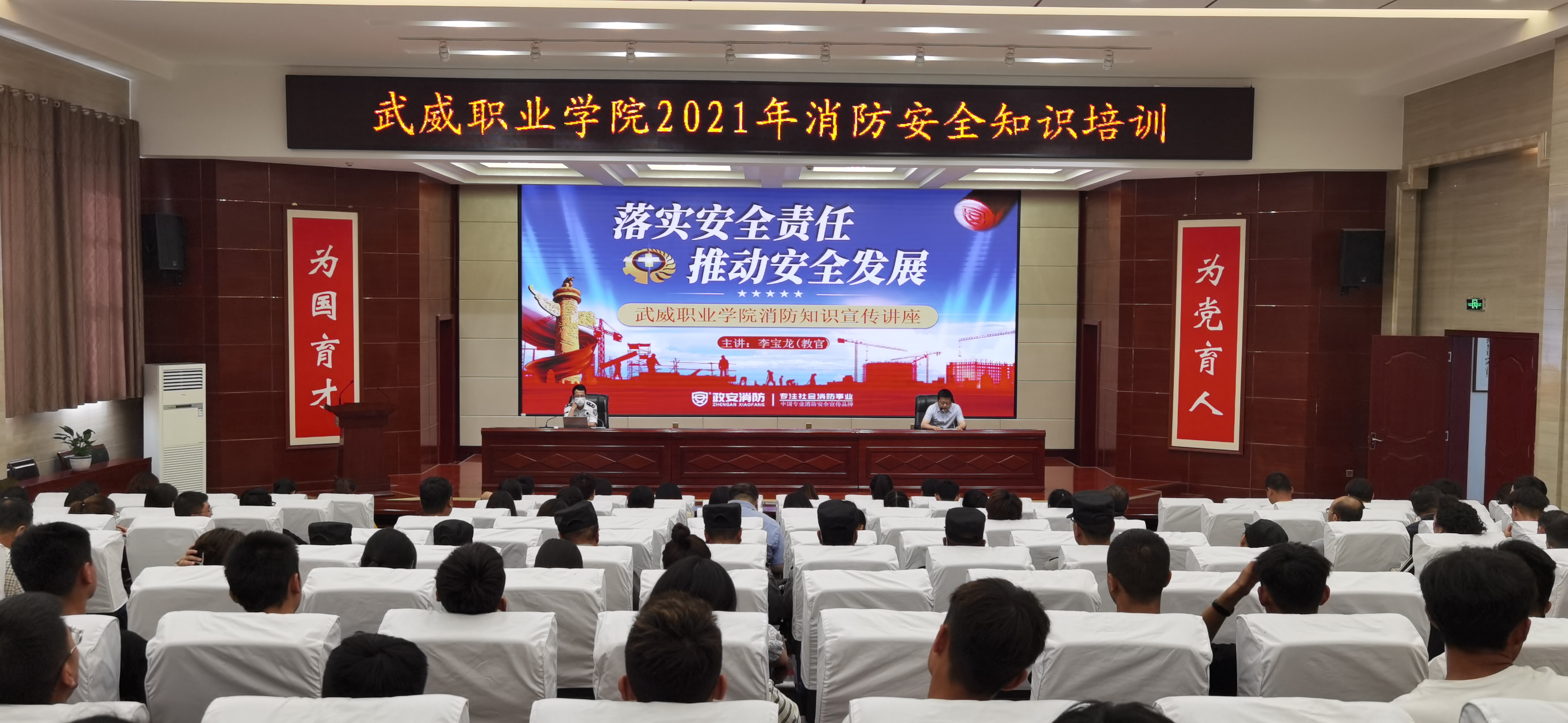 6月21日下午,學院在菁英廳舉辦了“安全生產月”消防安全知識培訓。蘭州政安消防教官李寶龍應邀作了“落實安全責任,推動安全發(fā)展”專題講座。學院各部門、教學院系安全信息員、實驗室管理員、近三年新入職教師及學院重點崗位工作人員、團學干部220余人參加了培訓。