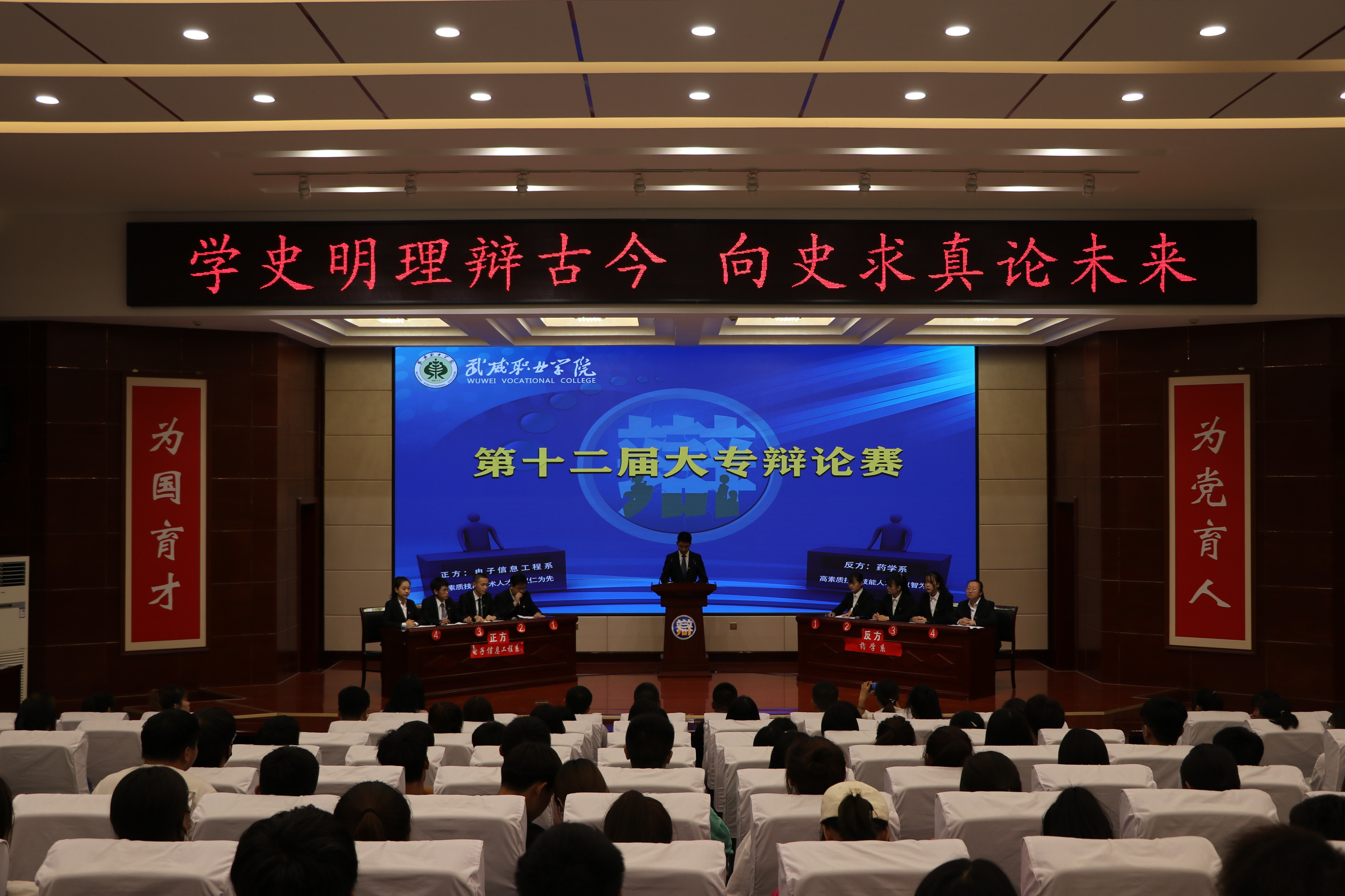 ? 2021年 7月1日晚武威職業(yè)學院第十二屆大專辯論賽在大學生活動中心菁英廳成功舉行。