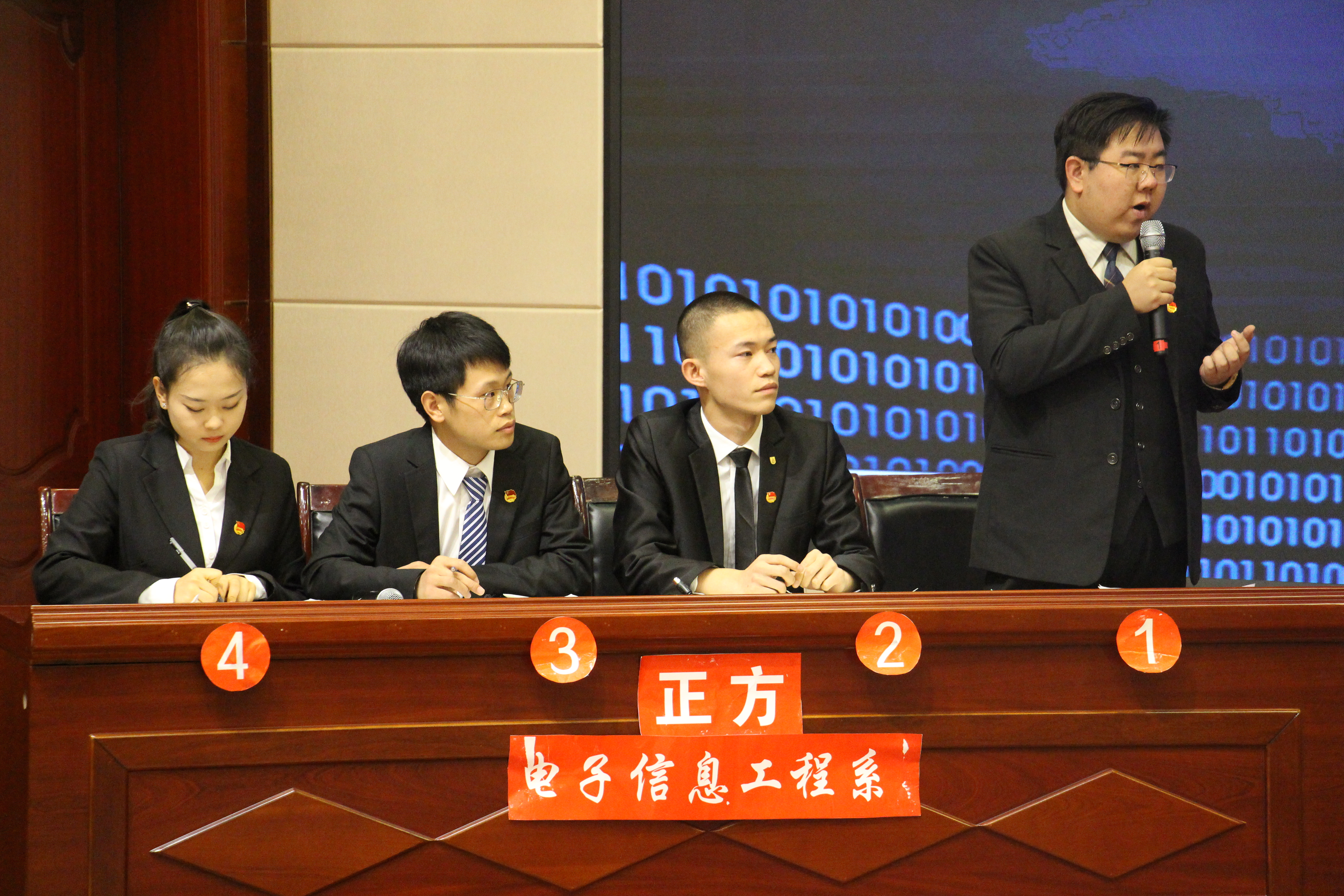 經(jīng)過11場(chǎng)次的比賽,電子信息工程系代表隊(duì)和藥學(xué)系代表隊(duì)進(jìn)入最后決賽。決賽現(xiàn)場(chǎng),正反雙方針對(duì)高素質(zhì)技術(shù)技能人才以“仁”還是以“智”為先拉開激烈交戰(zhàn)。雙方選手在立論、駁立論、攻辯等環(huán)節(jié)中思路清晰,引經(jīng)據(jù)典,高潮迭起。自由辯論環(huán)節(jié),雙方唇槍舌戰(zhàn),針鋒相對(duì),步步為營(yíng),愈辯愈烈,精彩紛呈,觀眾也積極互動(dòng),現(xiàn)場(chǎng)氣氛十分活躍。