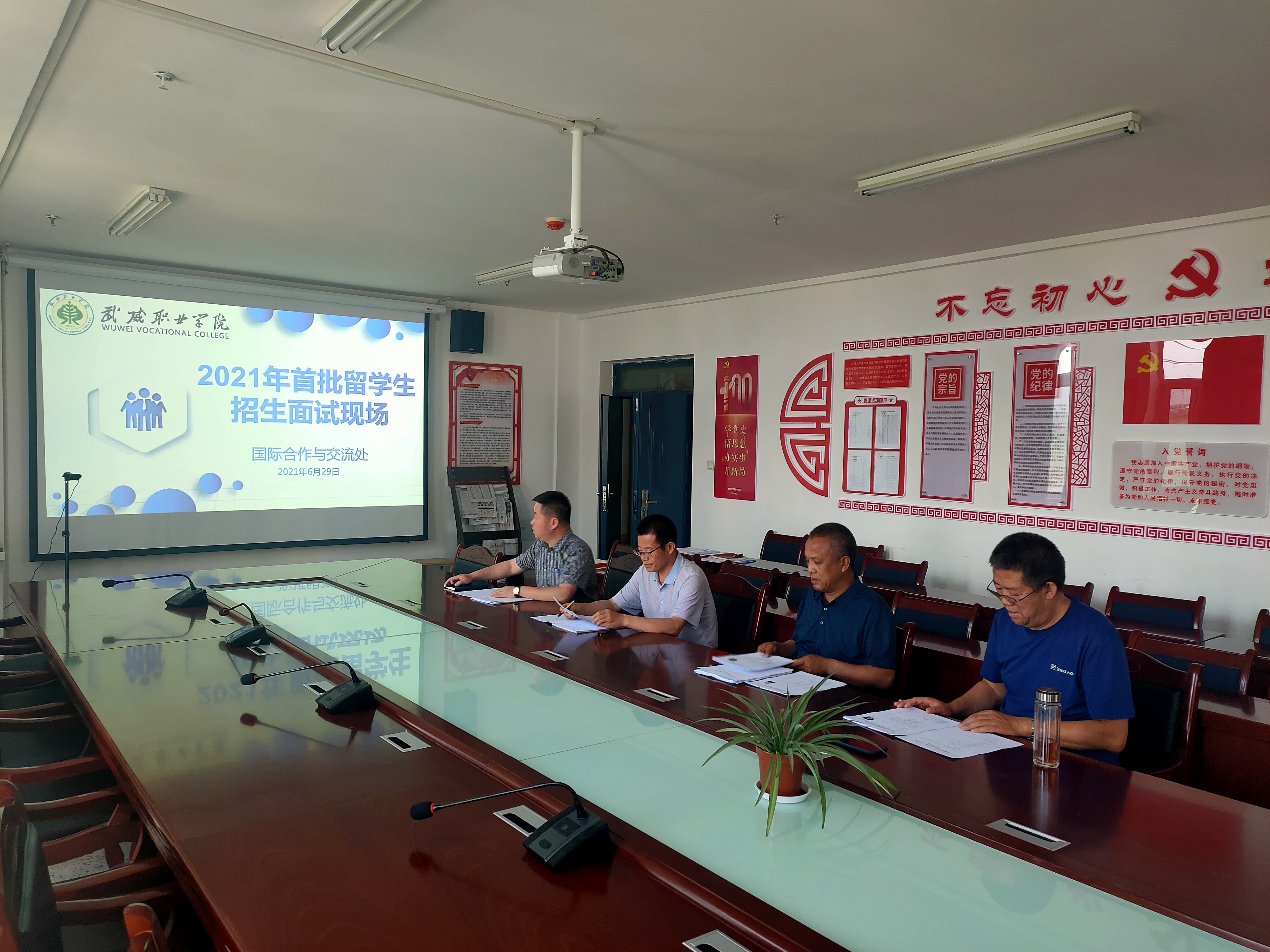開展來華留學(xué)生招生面試工作旨在通過面對(duì)面地觀察、交談等雙向溝通方式,有效測(cè)評(píng)候選國(guó)際學(xué)生的能力素質(zhì)、個(gè)性品質(zhì)、來華動(dòng)機(jī)、學(xué)習(xí)目標(biāo)等要素,以確保優(yōu)質(zhì)留學(xué)生生源來華學(xué)習(xí)。國(guó)際合作與交流處處長(zhǎng)潘從民及國(guó)際合作與交流處工作人員參加面試。