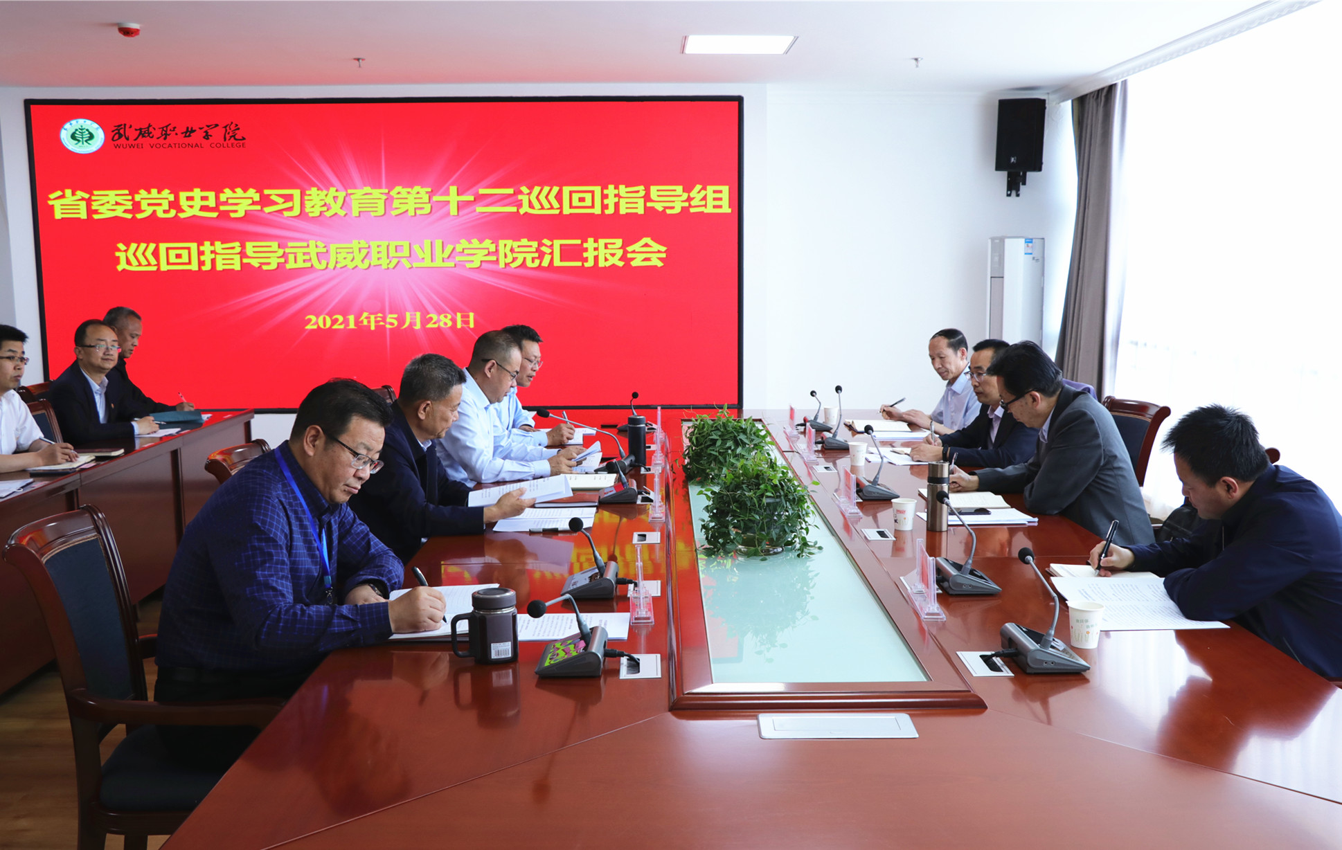 5月28日,省委黨史學習教育第十二巡回指導組來學院檢查指導黨史學習教育開展情況。巡回指導組由省政協(xié)教科衛(wèi)體委員會副主任、組長朱衛(wèi)國,甘肅農(nóng)業(yè)大學紀委、監(jiān)察專員辦公室綜合室副主任黃振華,甘肅開放大學宣傳部副部長趙鑫以及甘肅政法大學機關(guān)黨委書記鄧全福等組成。學院黨委班子成員、各基層黨組織書記、學院黨史學習教育領(lǐng)導辦公室成員參加匯報會。匯報會由黨委書記、院長趙明主持。