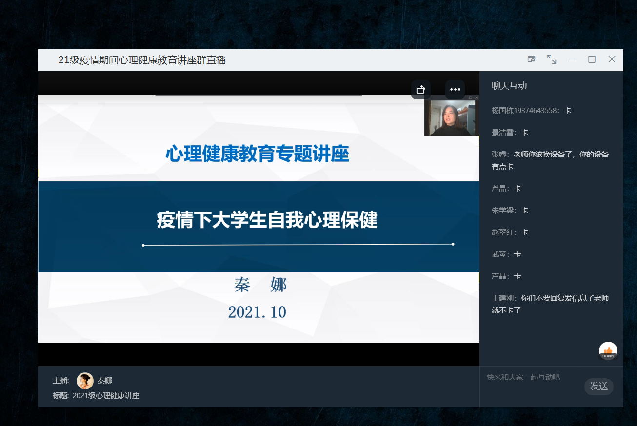 為提升我系學(xué)生對新冠肺炎的科學(xué)認(rèn)識,做好心理健康知識宣傳普及,疏導(dǎo)學(xué)生因封閉管理帶來的負(fù)面情緒,營造強(qiáng)信心、暖人心、聚生心的校園氛圍,在經(jīng)濟(jì)管理系黨總支的領(lǐng)導(dǎo)部署下,學(xué)生黨支部精心整理了新型冠狀病毒肺炎相關(guān)學(xué)習(xí)資料及新冠肺炎疫情下促進(jìn)大學(xué)生心理健康相關(guān)網(wǎng)絡(luò)課程,邀請學(xué)院心里健康咨詢師秦娜老師組織開展疫情防控線上學(xué)習(xí)活動(dòng)。此次學(xué)習(xí)活動(dòng)面向全系2021級全體同學(xué),旨在幫助學(xué)生更好地了解有關(guān)新冠肺炎防護(hù)的知識,緩解同學(xué)們在封閉管理期間產(chǎn)生的煩躁不安等情緒,正確應(yīng)對疫情,有效保護(hù)自身安全。