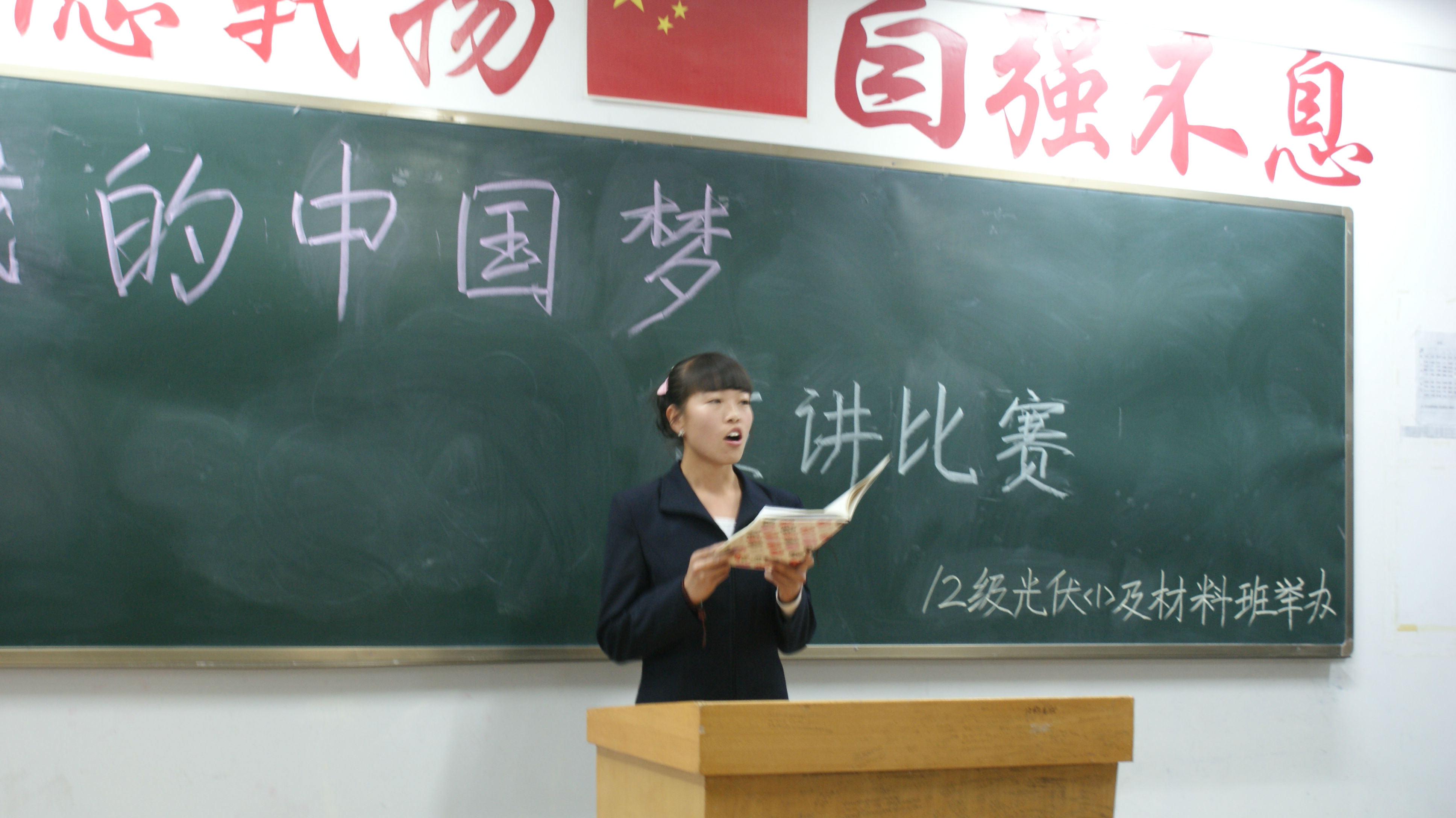 為積極引導(dǎo)同學(xué)們實(shí)現(xiàn)國(guó)家富強(qiáng),民族復(fù)興,人民幸福的偉大中國(guó)夢(mèng)而發(fā)奮工作學(xué)習(xí),能源工程系光伏發(fā)電技術(shù)及應(yīng)用一班及材料班在2013年4月10日在二號(hào)教學(xué)樓503教室舉辦了以《我的中國(guó)夢(mèng)》為主題的演講比賽。