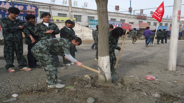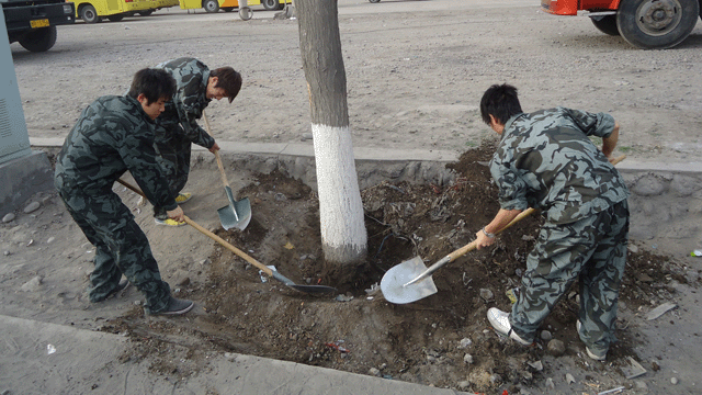 年年植樹,人人植樹,公益植樹,熱情的高漲,無疑是一種社會的進步。在老師的帶領(lǐng)下,同學(xué)們進行分組、領(lǐng)取勞動工具。到植樹點后同學(xué)們兩兩組合,在馬路兩側(cè)一字排開,揮動鐵鍬,松土挖坑,干得十分起勁,盡管道路上塵土飛揚,參加植樹活動的老師同學(xué)卻揮汗實干,從學(xué)院西門口到皇臺酒廠一段的馬路兩側(cè)留下了同學(xué)們勞動的身影和歡快的笑語。