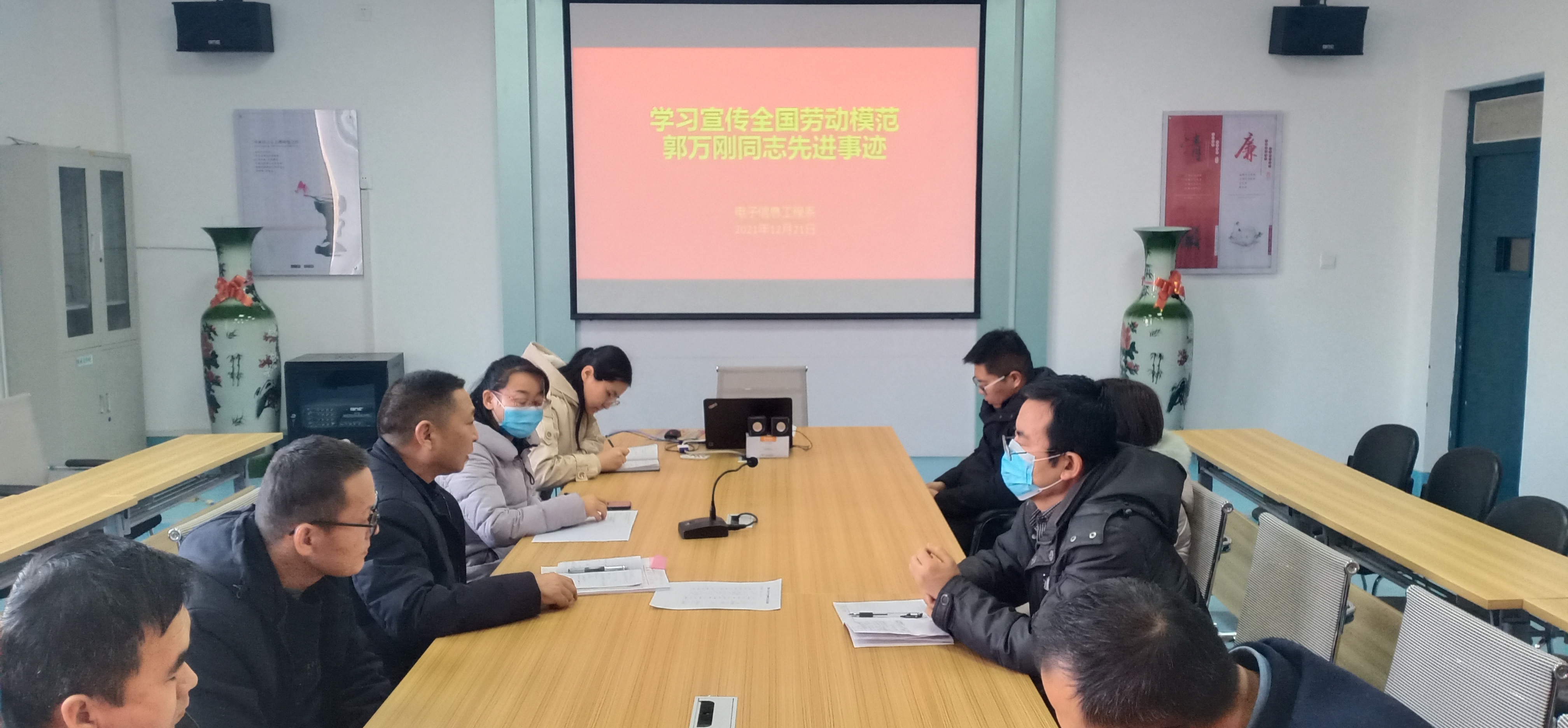 12月23日下午,電子信息工程系組織全體教師在明德樓409會(huì)議室學(xué)習(xí)全國勞動(dòng)模范郭萬剛同志先進(jìn)事跡。