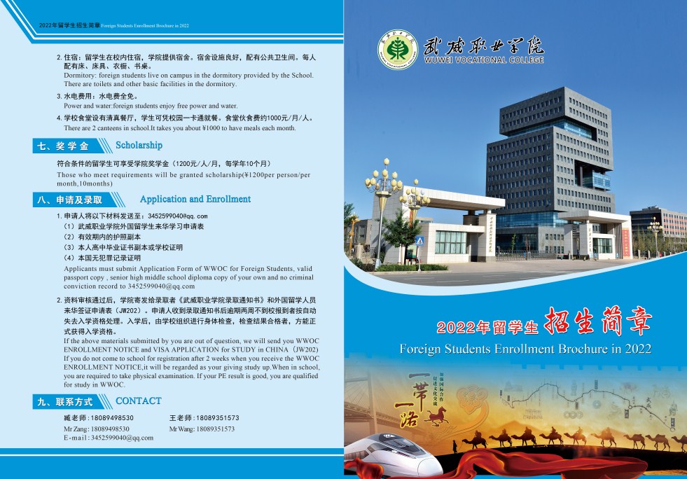 武威職業(yè)學(xué)院2022年留學(xué)生招生簡章