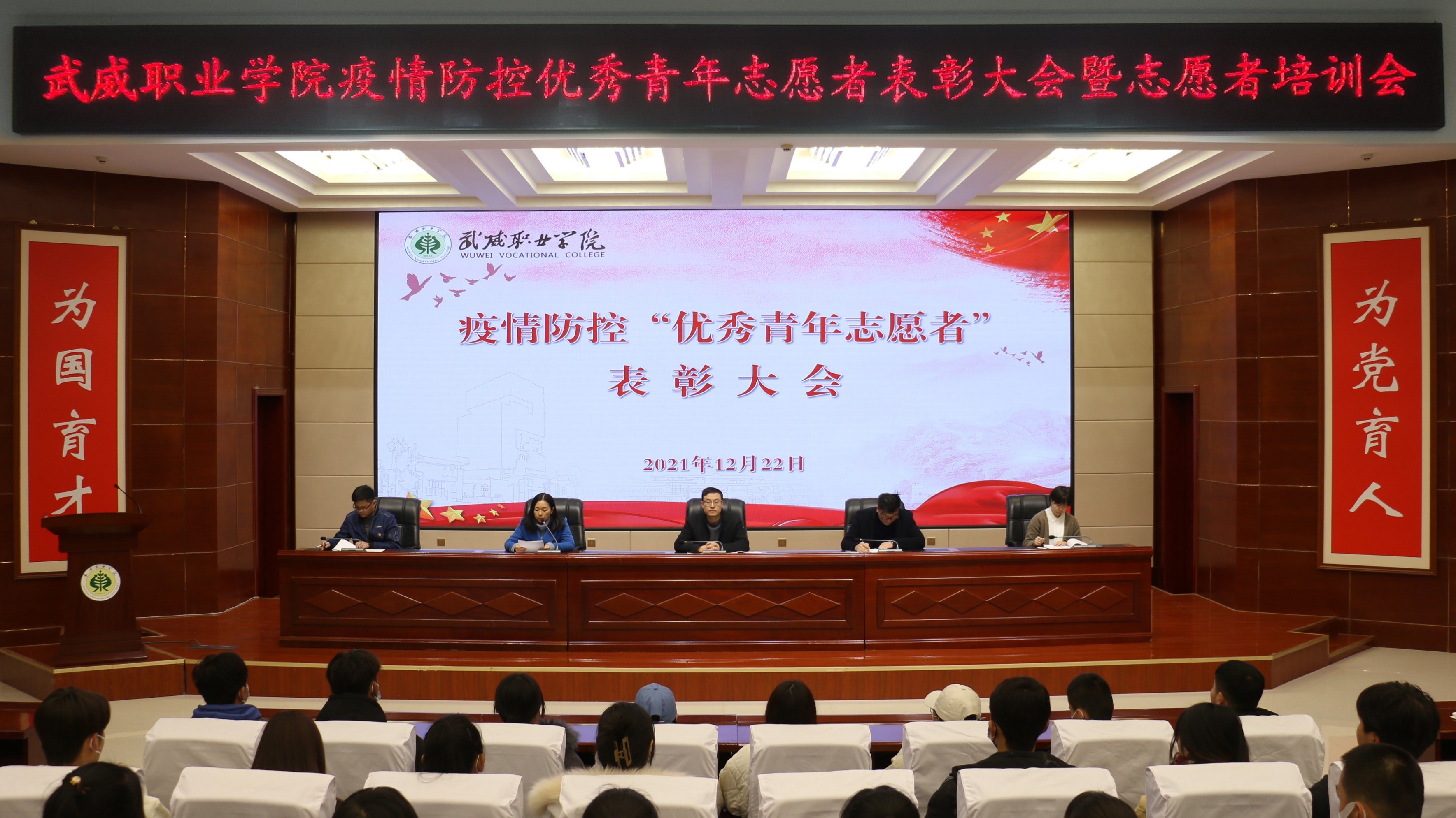 為表彰學院疫情防控期間涌現出的先進典型,弘揚偉大的抗疫精神,進一步增強學院青年志愿者協(xié)會的組織凝聚力和團隊協(xié)作力,院團委于12月22日在學生發(fā)展中心菁英廳召開疫情防控優(yōu)秀青年志愿者表彰大會暨志愿者培訓會,院團委全體教師、志愿者代表參加了大會。
