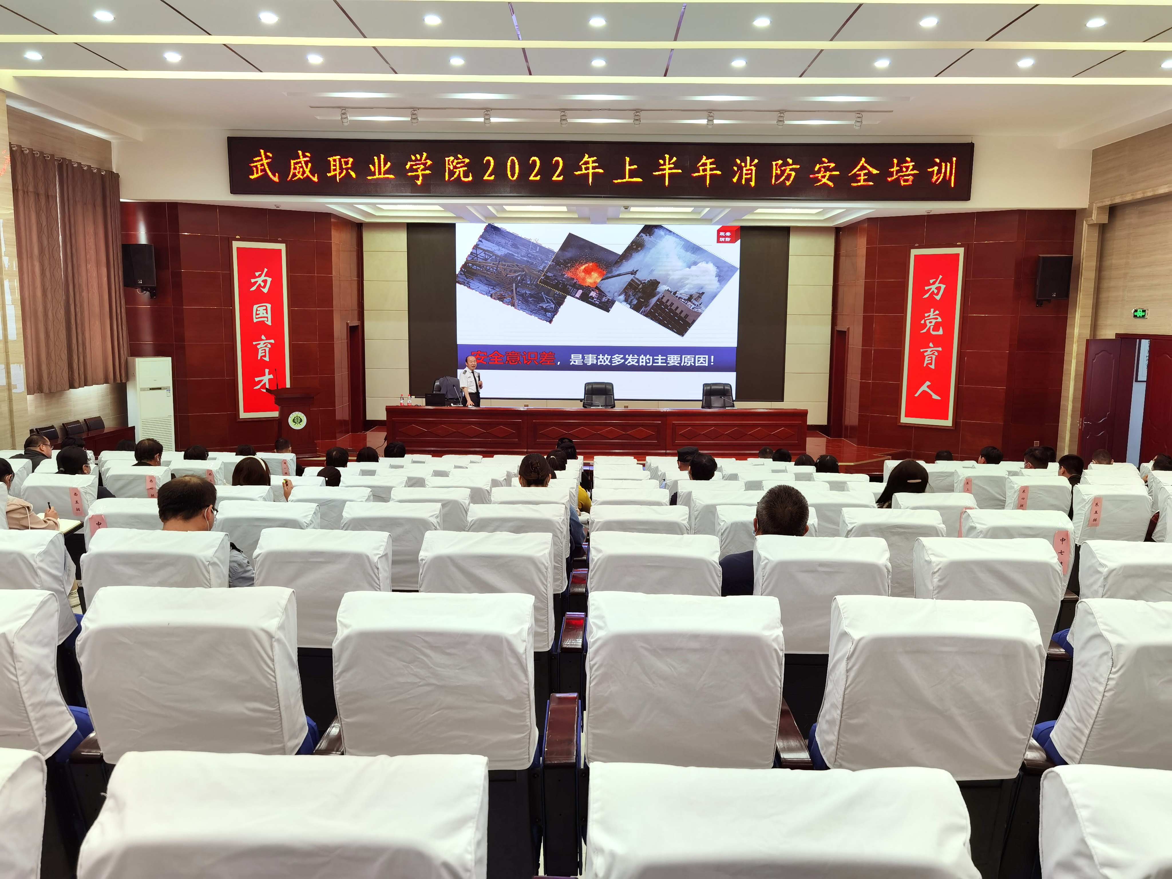 5月18日下午,學(xué)校在大學(xué)生發(fā)展中心菁英廳舉辦了2022年上半年消防安全知識(shí)培訓(xùn)。蘭州政安消防教官宋海斌應(yīng)邀作了“減輕災(zāi)害風(fēng)險(xiǎn),守護(hù)美好家園”專(zhuān)題講座。各部門(mén)、二級(jí)學(xué)院安全信息員、實(shí)驗(yàn)實(shí)訓(xùn)室管理員、新進(jìn)教師和消控室、學(xué)生食堂等重點(diǎn)管理崗位人員參加了培訓(xùn)。