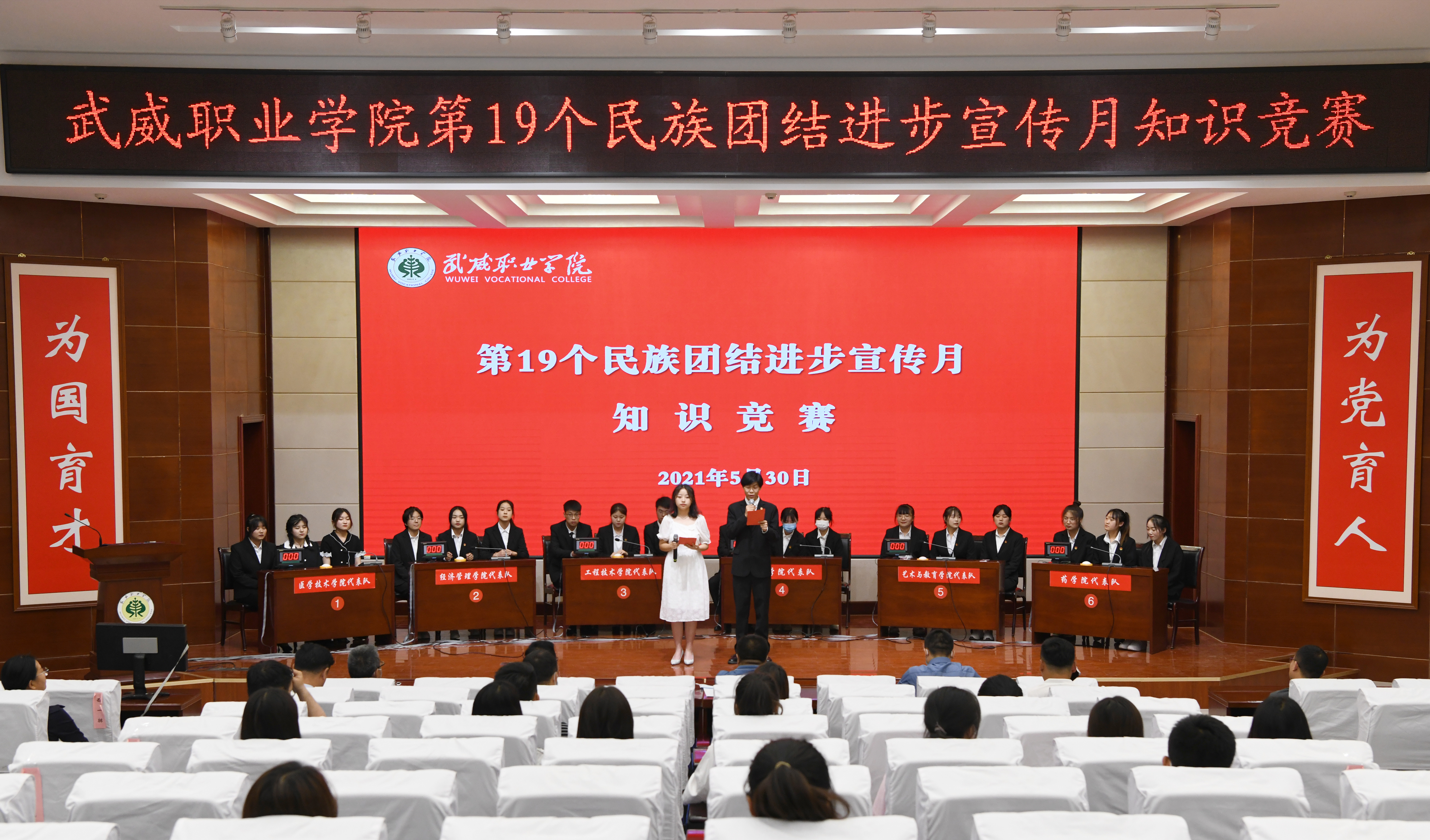 為進(jìn)一步鑄牢中華民族共同體意識(shí),營(yíng)造民族團(tuán)結(jié)一家親的良好氛圍,迎接黨的二十大勝利召開(kāi),5月30日下午,學(xué)校在學(xué)生發(fā)展中心菁英廳舉辦了以“鑄牢中華民族共同體意識(shí) 喜迎黨的二十大召開(kāi)”為主題的知識(shí)競(jìng)賽。學(xué)院黨委委員、副校長(zhǎng)何毅出席并為獲獎(jiǎng)團(tuán)隊(duì)頒獎(jiǎng)。
