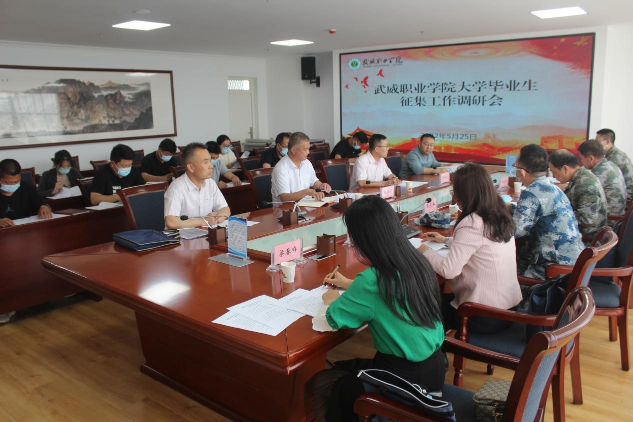 5月25日下午,武威軍分區(qū)大校范玉芳司令員帶領(lǐng)軍地工作組一行6人,來學(xué)校調(diào)研指導(dǎo)大學(xué)畢業(yè)生征兵工作。學(xué)校黨委委員、副校長(zhǎng)王守云共同調(diào)研,學(xué)校征兵工作站工作人員、輔導(dǎo)員和畢業(yè)班班主任代表參加了匯報(bào)會(huì)。