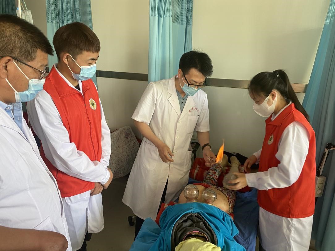 圖4- 對雙城鎮(zhèn)安全村民免費進行拔罐治療