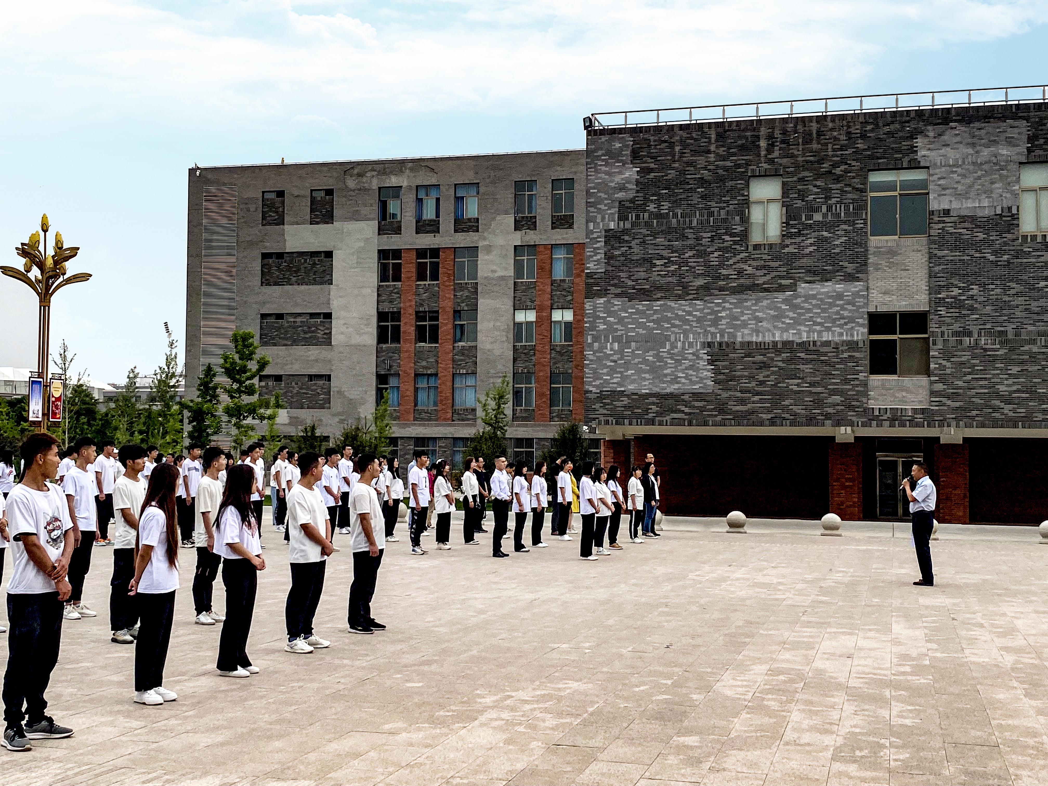 在飄揚(yáng)的五星紅旗下,學(xué)生代表黃美棟同學(xué)發(fā)言,我們要勇敢地承擔(dān)起祖國(guó)的重托,把自己的人生理想與祖國(guó)、與時(shí)代緊緊聯(lián)系在一起,做個(gè)新時(shí)代的社會(huì)主義事業(yè)的建設(shè)者和接班人。一代人有一代人的使命,一代人有一代人的擔(dān)當(dāng)。擔(dān)當(dāng)責(zé)任是青春中最靚麗的顏色,爭(zhēng)做時(shí)代的開(kāi)拓者、奮進(jìn)者。我們青年需勇?lián)鷱?fù)興重任,以青春之理想,續(xù)時(shí)代之華章。