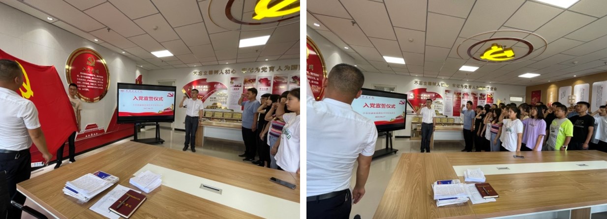 在“七一”來臨之際,為加強黨員教育、增強黨性觀念,中科低碳新能源技術(shù)學(xué)院黨總支于2022年6月27日下午在能源樓六樓黨員活動室組織開展了新黨員入黨宣誓儀式。學(xué)院黨總支全體黨員以及師生預(yù)備黨員參加宣誓儀式。